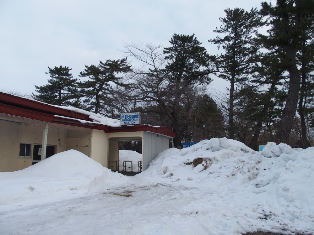 ここは東北の桜の名所である芦野公園に隣接した駅で、春先ではそれは見事な桜のトンネルを作り出してくれるのですが、流石にこの時期ではその風景を見出だす事は難しそうです。それでも駅の佇まいの雰囲気は良くて、東北の駅百選にも選ばれているくらいです。太陽があまり照り付けないのか、積雪も多く残っており、時間が止まったかのような演出を作り出していました。ここから1駅先の金木駅まで“さんぽ”したいと思います。