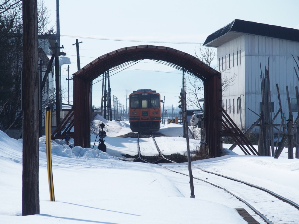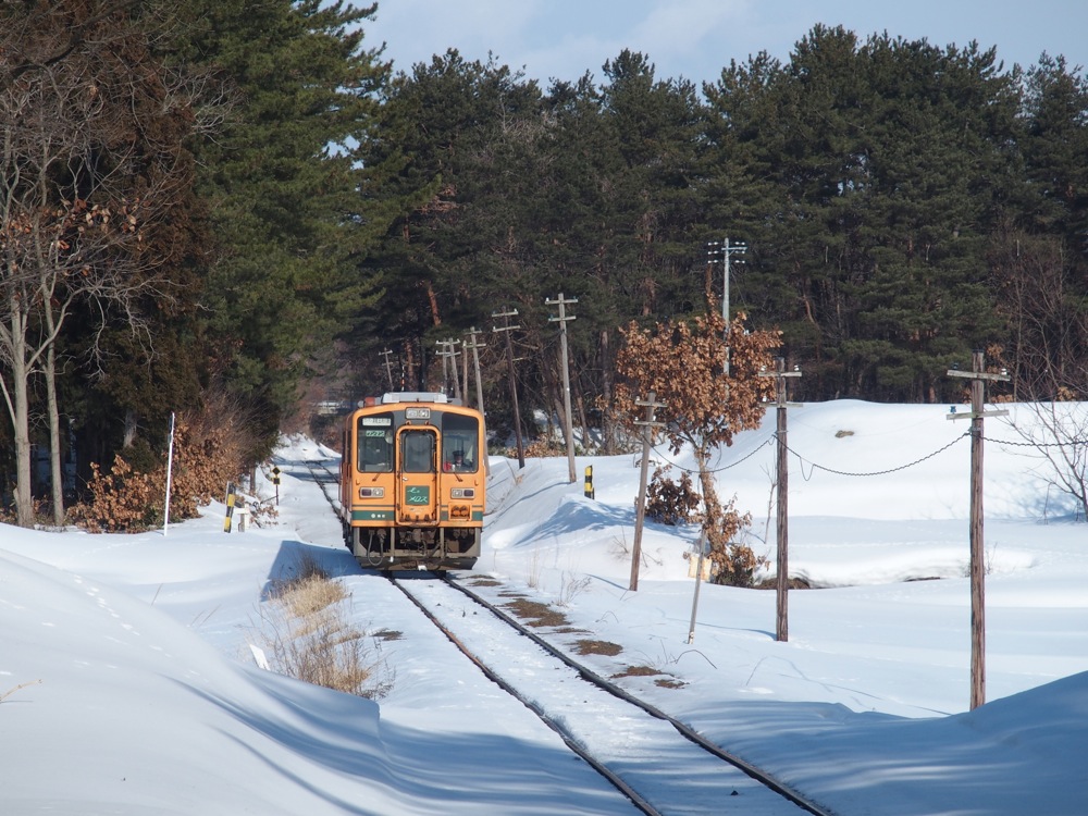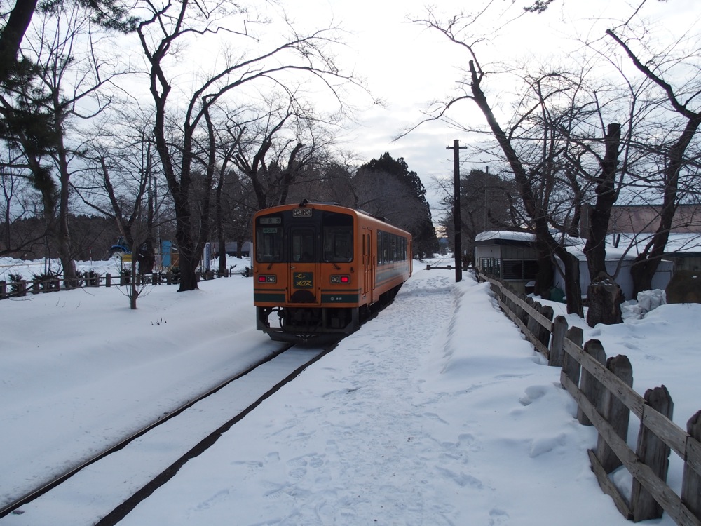 これで津軽鉄道の“さんぽ”は終了となります。だいぶ天気に恵まれてしまい、いわゆる冬の厳しい風情を感じる事はありませんでしたが(笑)、好天の中、元気に走り回る津軽鉄道の車両が見る事が出来て良かったです。本州最北の地の鉄道ですが、少し身近な存在になれたような気がしたものでした。前回、今回と、津軽鉄道へはまだ冬の季節にしか訪れていませんが、春には前述の芦野公園への特別列車、夏になれば風鈴列車、秋には鈴虫列車(笑)と、色々なアイデアで多くの人に乗って貰おうという努力が見られる鉄道会社でもあります。ここの魅力は冬だけではなく、季節感そのものなのかもしれませんね。