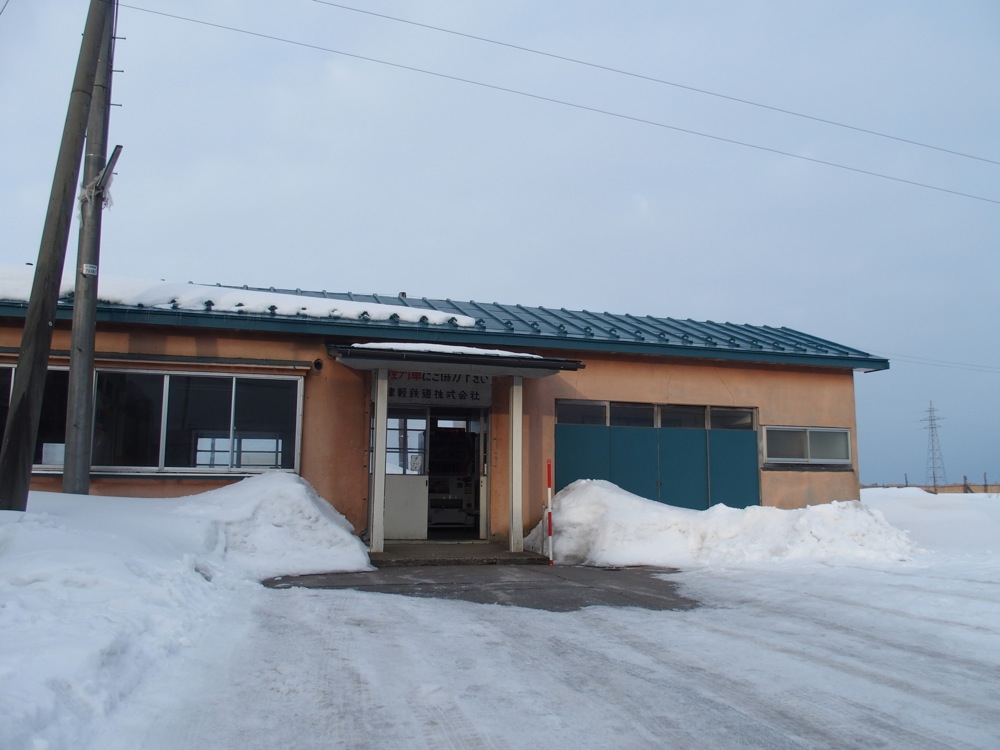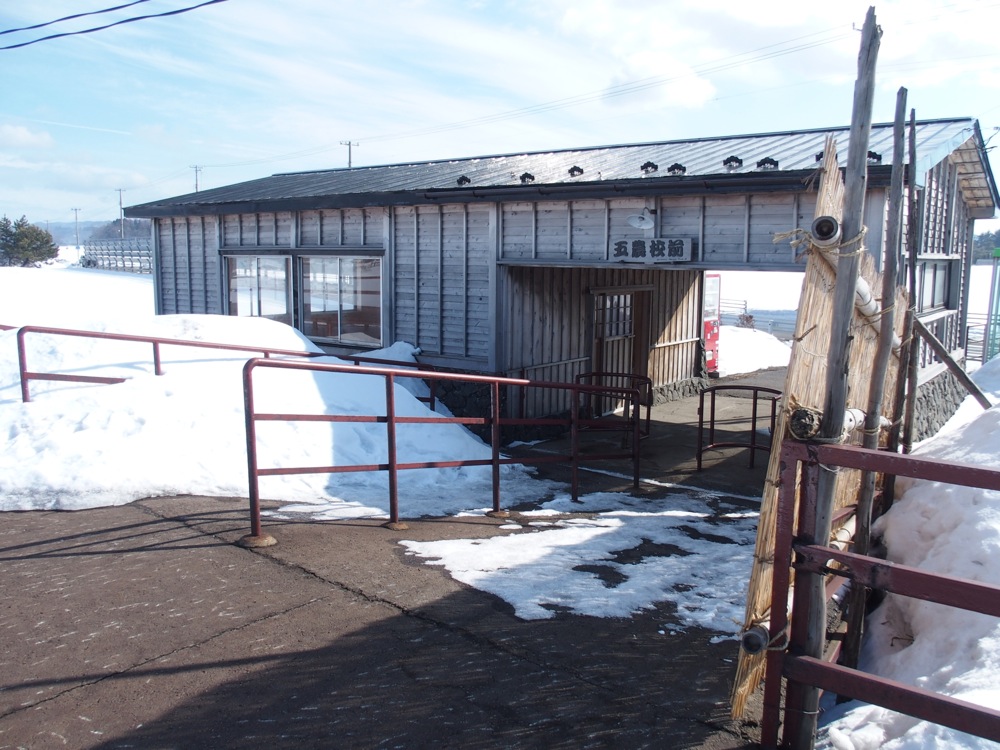 そうして五農校前駅までやってきました。五農校というのは青森県立五所川原農林高等学校の事で、その最寄り駅という事なのでしょう。確かに、いま来た道の脇に校門らしきものがあったのは覚えているのですが、校舎らしきものが全く見えなかったような気がします。…実は、それもその筈でして、この学校は敷地が広く(日本で2番目に大きいとか)、校門から校舎までが約800mもあるらしいのです。これは、列車通学では気を付けなければいけないですね。駅から校門は徒歩3分程度ですが、そこから校舎までは更に10分程掛かるらしいので…(笑)。