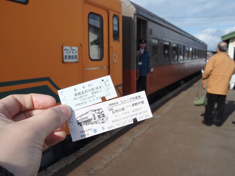 現在、ストーブ列車の旧型車両に乗るには、乗車券の他にストーブ列車券の400円が別途必要です。津軽鉄道では普通乗車券を含め、全て昔ながらの硬券が使われており、これも鉄道好きにはたまらない要素の1つでしょう。車内に入ると非常に温かく、それが2台のダルマストーブによるものだと、すぐに分かりました。この日は平日のせいか、お客さんは全部で5組程度でしたが、津軽半島のツアー等でこの列車乗車が組み込まれているのもあり、確かに前回乗った時には団体客で大賑わいな状態でした。