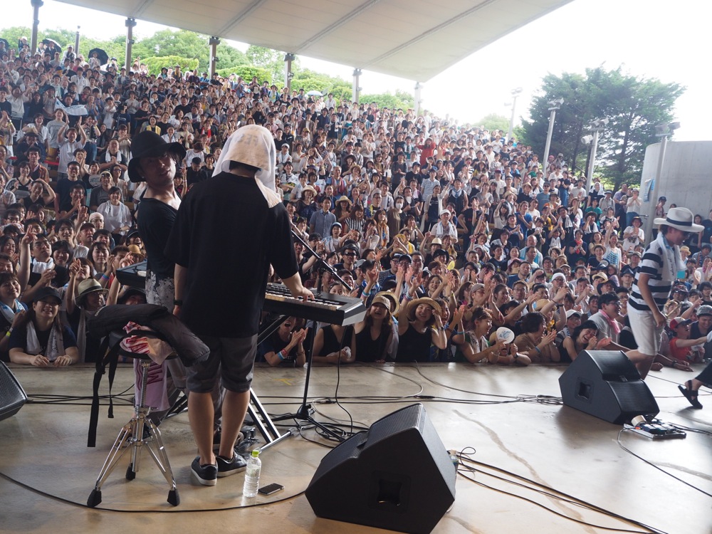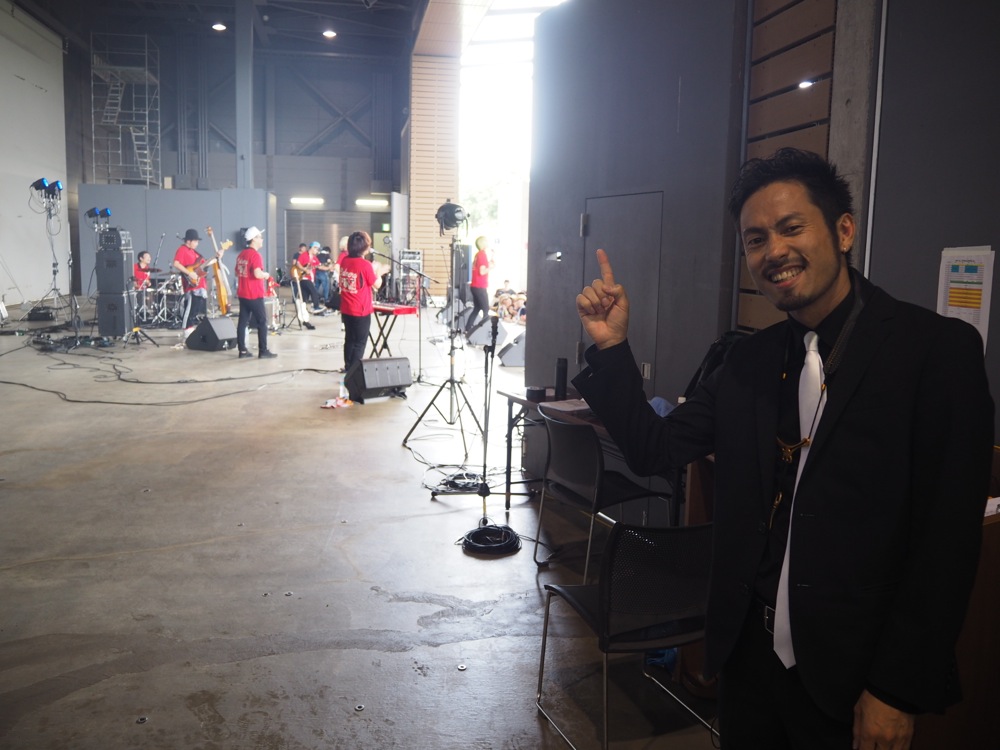 自分が会場入りした少し後に、オープン待ちの長い列を作っていた会場がオープンへ…。今回の会場である浜名湖ガーデンパークは一気に殆どの客席が埋まり、既に立ち見が出る程の盛況振りを見せてくれました。その後、東京を朝方に出発した TRI4TH メンバーも到着、合流し、出演に向けて徐々に準備を進めていきました。