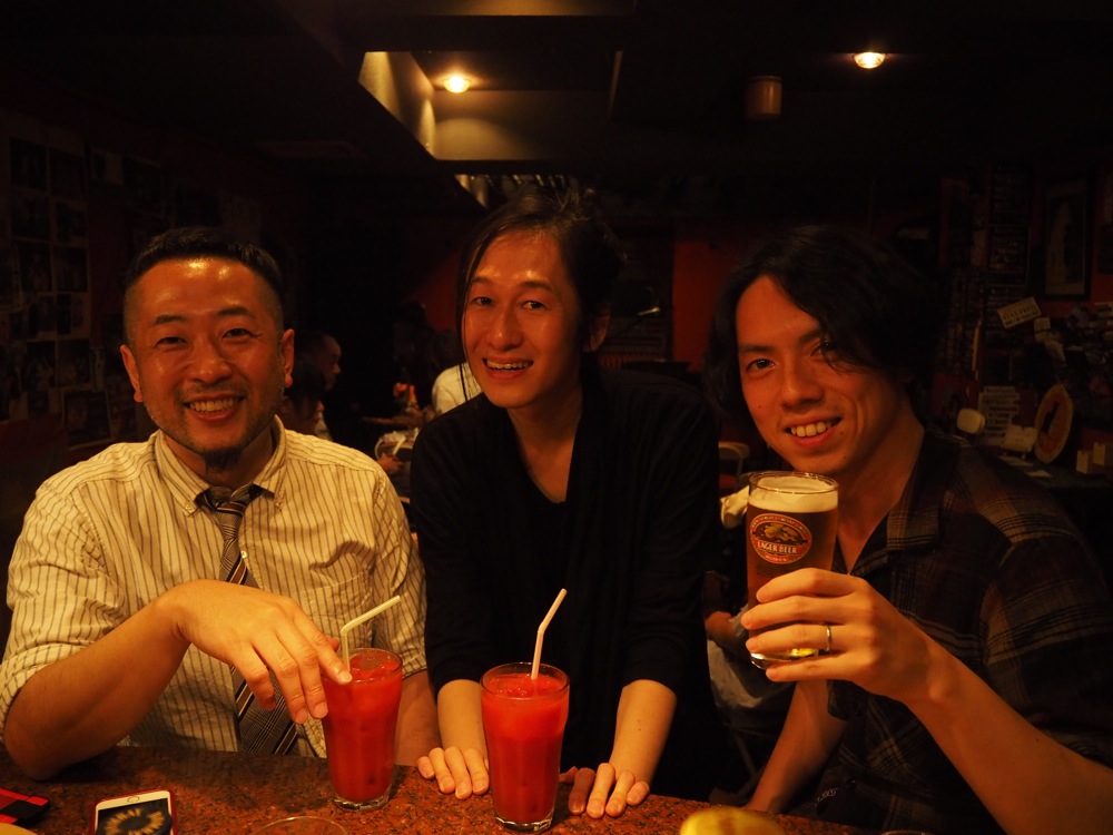 リリース・パーティーを終えた後の打ち上げ会場にて…。初日を無事に終えられたからこそ、皆で囲んで飲むお酒は美味しいものです。今回も多くの方にお世話になりました。どうもありがとうございました!