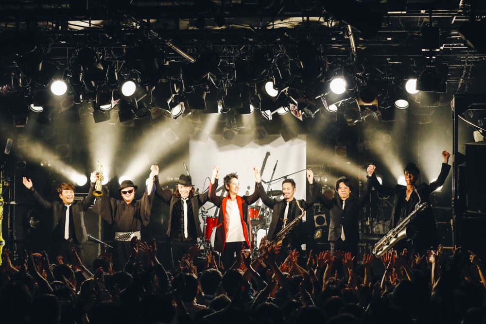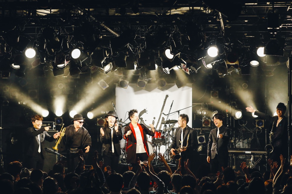 アンコールは再度7人で、ステージを楽しんでお届けしていきます。お馴染みのドラムフィルから始まったのは“N.I.N.K.Y.O”。ここで7人のサウンドをいきなり全開にし、押し寄せる波の如くフロアに響き渡らせます。曲中のソロはサックス、そしてピアノといういつもの順番ではありましたが、この分厚いサウンドのインスピレーションから生まれるソロというのは、正に今回だけでしか味わえないものがお聴き頂けたのではないでしょうか。…会場の熱気も最高潮に達しています。いよいよ本当にラストの曲に突入です。