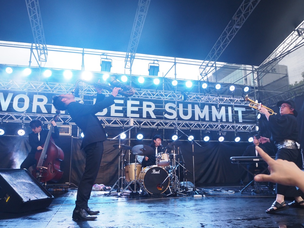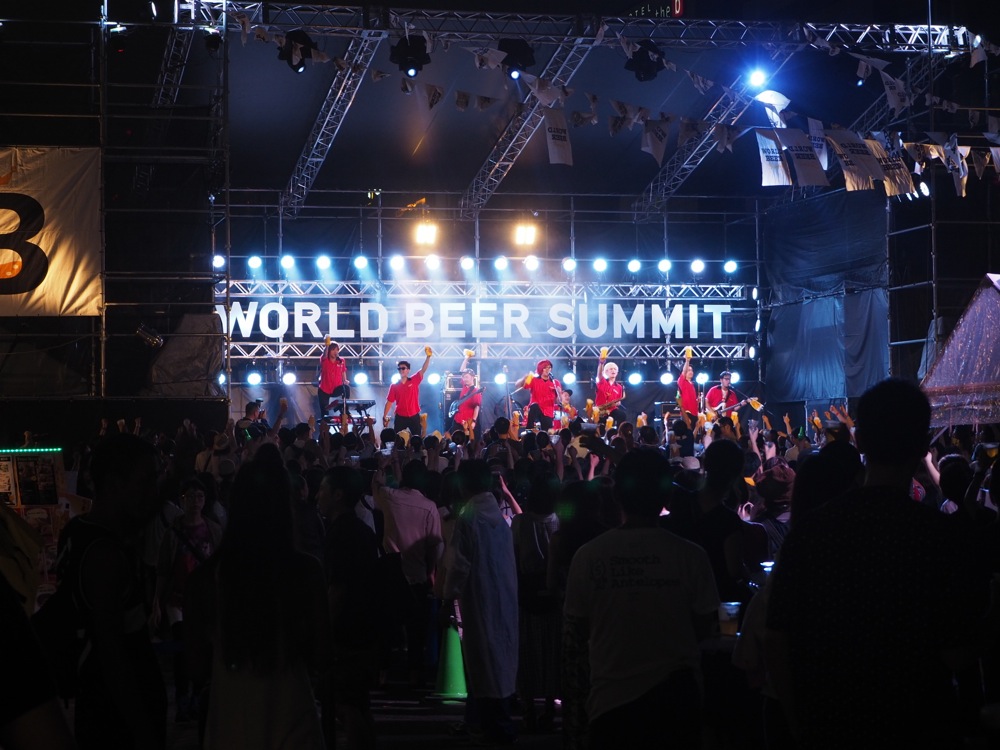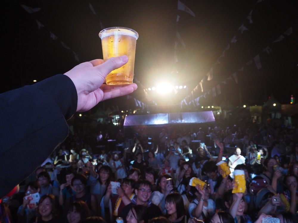 ただ、奇跡はまだまだ続きます。この土砂降りも次第に止み、この後のカルメラのライブの時には雨が降る様子すら感じなくなる程になったのでした。ビールと音楽の祭典という事で、皆でビールで乾杯のシーンがここでは沢山起きていたように思います。ドタバタではありましたが、やっと心置きなく乾杯が出来たように思いました。