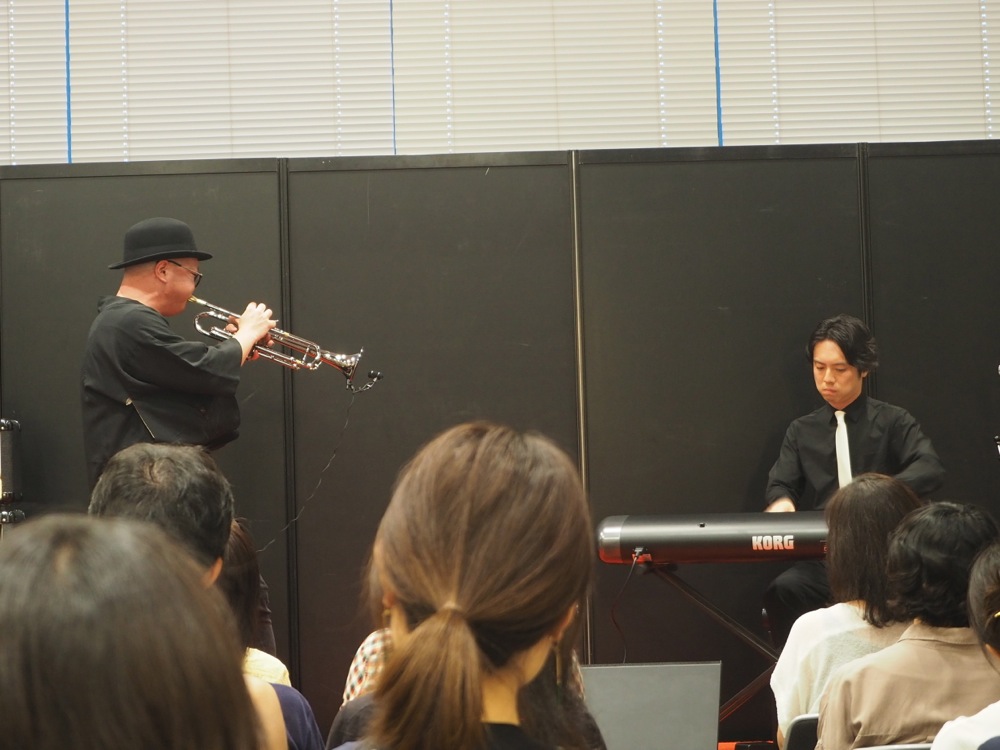 お客さんが総立ちで見て頂けるというのは、こうした楽器イベントでのステージではあまり見る事が出来ない光景でもありましょう。お客さんは勿論、楽器屋のスタッフの方々にも楽しんで頂けてようで良かったです。少ない楽器編成で演奏した分、TRI4TH Horns らしい音色が、より明確に聴き取れたのではないでしょうか。そしてまた TRI4TH 本編成ライブの時にも、これら楽器の特徴を思い出して頂けたら幸いです。どうもありがとうございました!