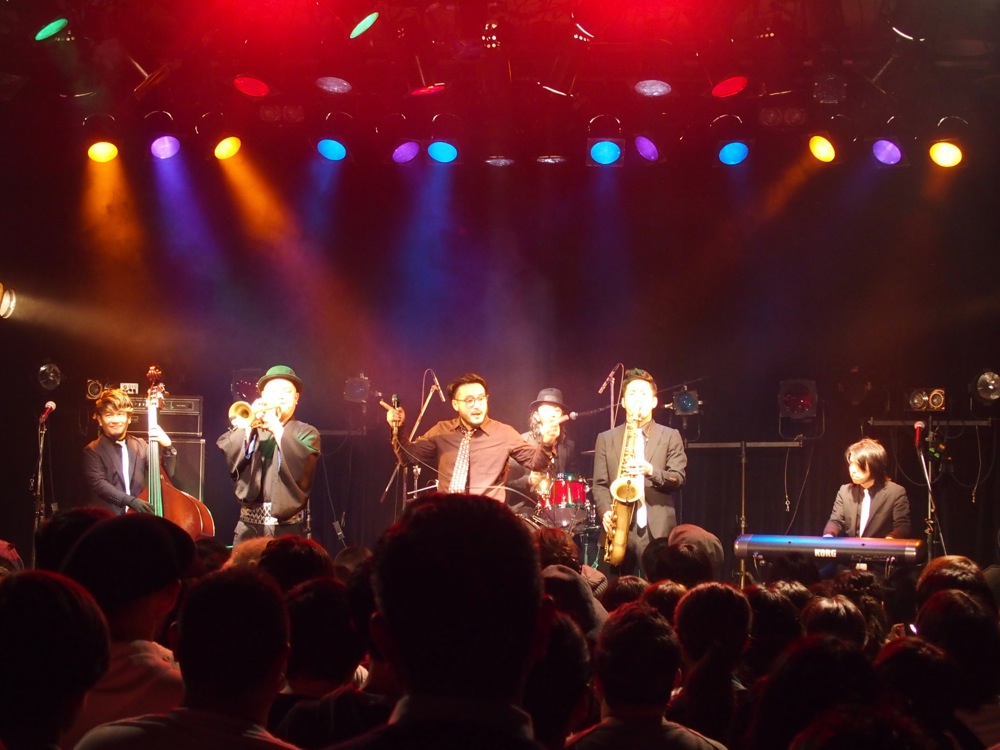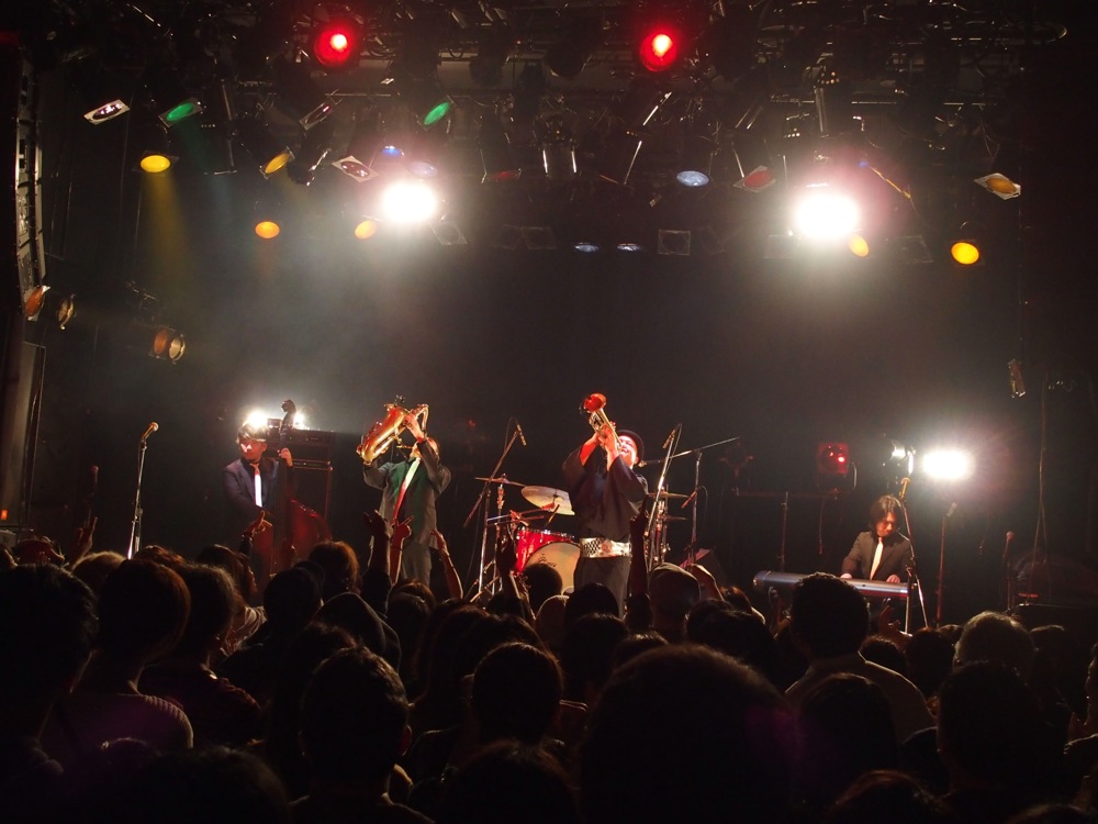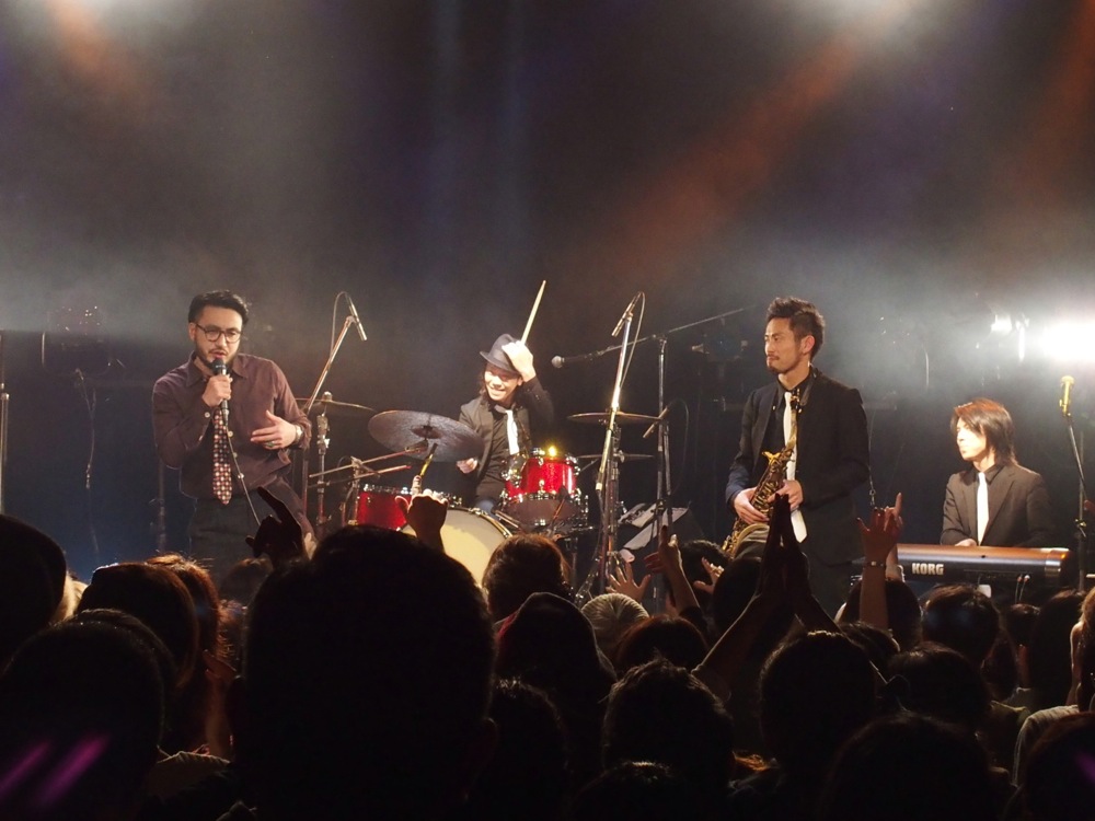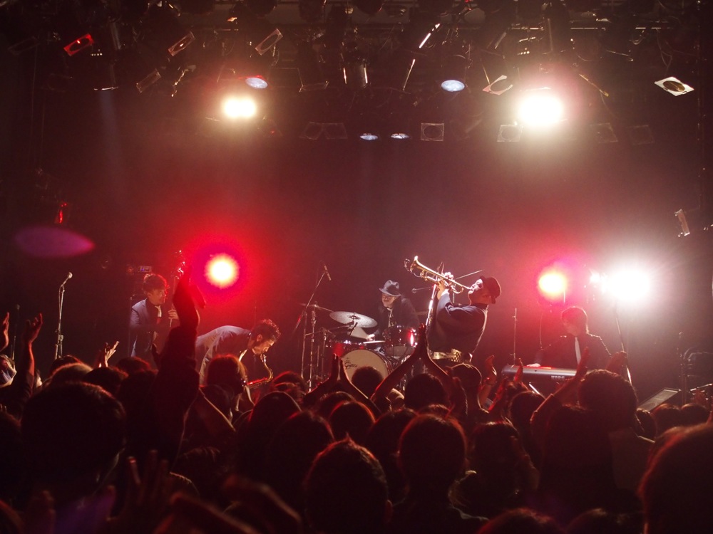 この辺りの時間になると、既にライブは佳境に向かっており、新曲“Boozer”から、ドラムソロをたっぷりと聴かせて、“SNAKE”、“Freeway”と繋げて、そのまま“FULL DRIVE”が今回の本編ラストの曲となりました。これぞ、踊れるジャズバンドの真骨頂…。フロアが多くのお客さんで揺れ、最高の一体感がそこにはありました。