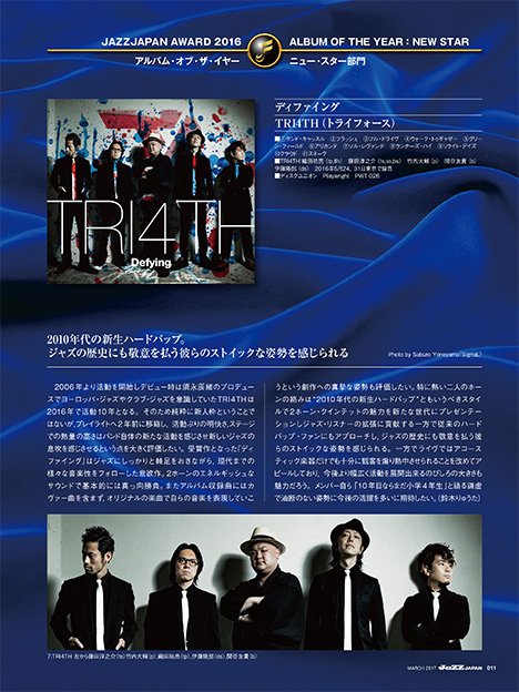 を授賞させて頂きました〔TRI4TH、JAZZ JAPAN AWARD 2016、CD『Defying』が