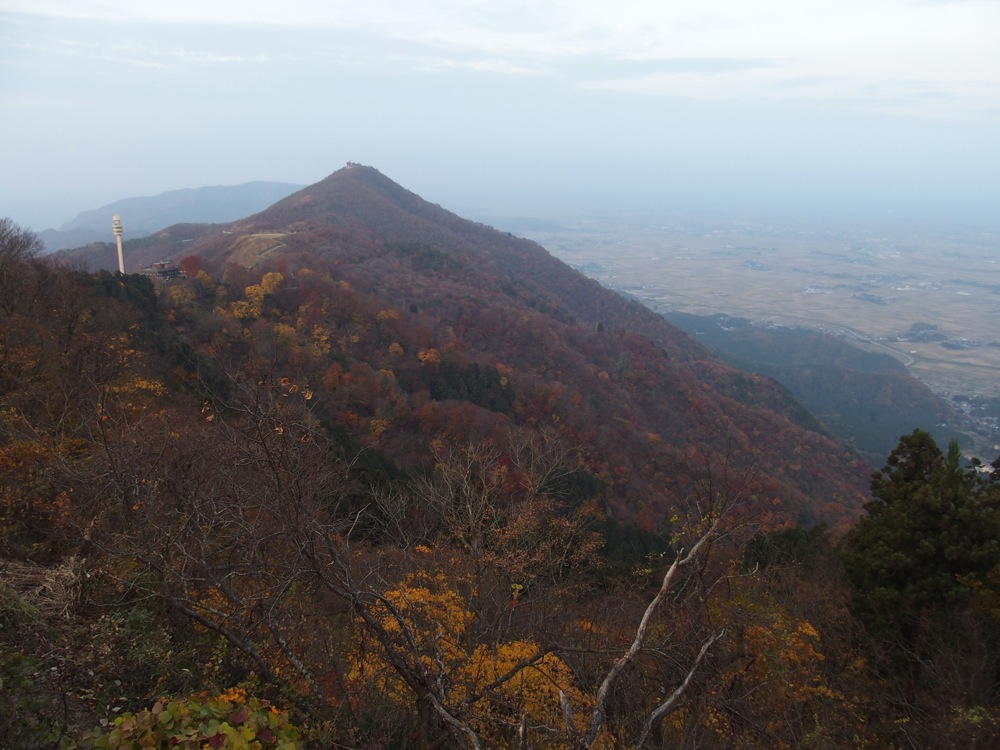 ロープウェイの所要時間は5分程なので、難なく上の駅までは着いてしまいましたが、ここから更に山頂まで歩け、そこには彌彦神社の奥社(御神廟)があるとの事。せっかくここまで来たならば行かない理由は無いと思い(笑)、更に歩いてそこまで向かいました。周囲の紅葉の綺麗さは勿論でしたが、新潟平野も見渡せ、空気もとても澄んでいて気持ち良いです。…いつの間にか山登りのようなスタイルになってしまいましたが(笑)、ロープウェイを降りた時に見掛けたパノラマタワーも、いつしか小さく見える程、山を登っていきました。