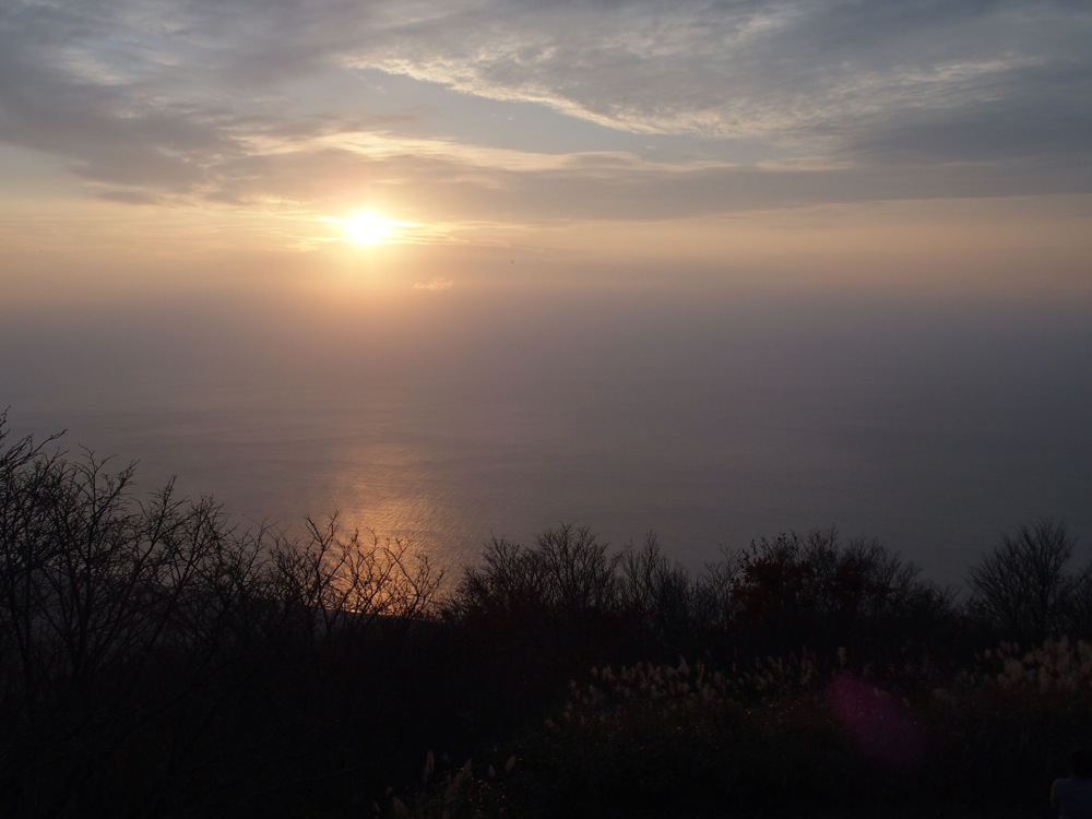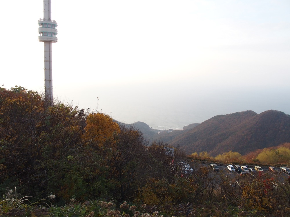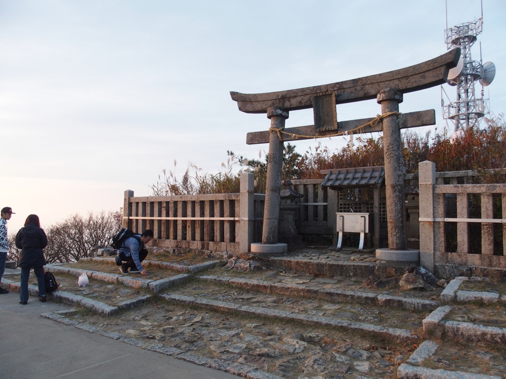 そして、着きました!…東京スカイツリーと同じ標高634mの山頂地点です。弥彦山は新潟県のほぼ中央に位置しているので、新潟県内のテレビ・ラジオ局のアンテナが幾つも設置されているのも面白い光景でしたが、ここから見た日本海もまた美しかったです。ちょうど海の向こうに夕陽が見える頃で、時間的にもバッチリでした。彌彦神社は日本有数のパワースポットらしいですが、この弥彦山にも沢山のパワーを貰ったような気になりました。