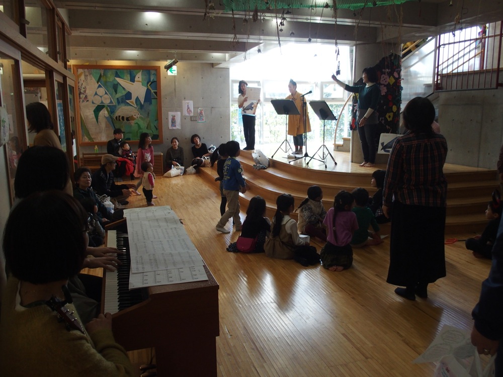 そして11月12日当日。昨日のぐずついた天気が嘘のように、朝から澄み切った天気が窓越しに臨め、紅葉も綺麗に色付いているではありませんか。個人的に、この状況に何だか目が冴えてしまい、気持ちの良い朝を過ごせたように思います。…故に、眠い目を擦りながら…という感じではなく幼稚園に入る事が出来ました。既に会場準備は始まっており、自分達もセッティングを始めます。