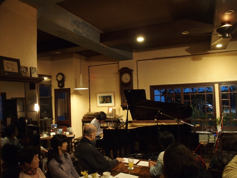 …そして、今回のライブ会場となる Utsuwa というお店へ向かいました。珈琲屋でもある会場はとても広く、グランドピアノが置いてあり、雰囲気も落ち着いて素敵な感じでした。ここでも勿論リハーサルは行いましたが、喉の負担を減らす為に、極力小さめでの打ち合わせ。それでも沢山の準備はしてきているので、お客さんも喜んで頂けると思います。