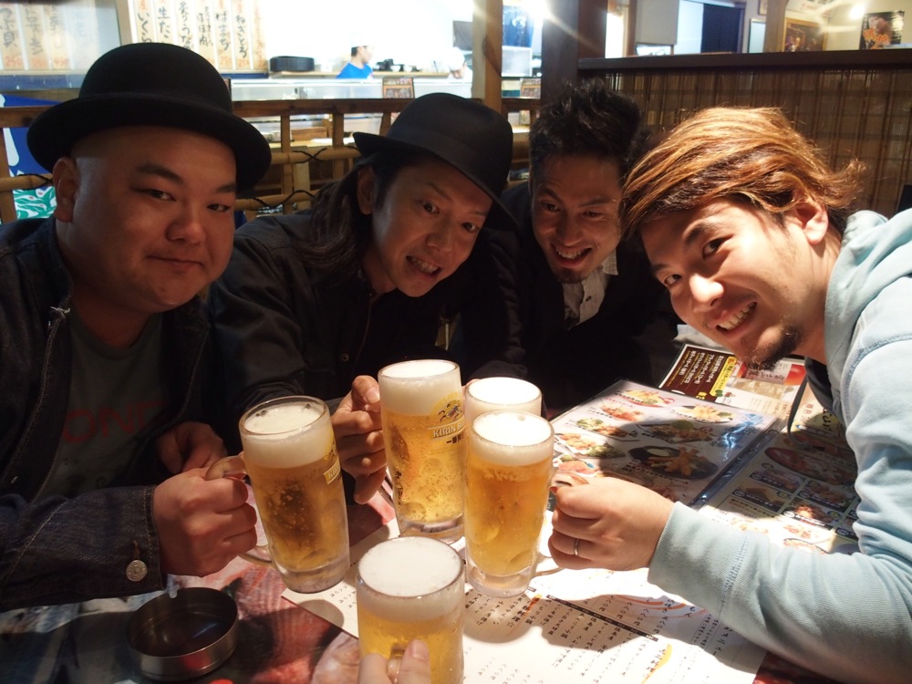 大阪に着き、またまた関谷家から有り難い歓迎を受けてしまいました。まずは長いツアーへの意気込みをぶつける感じで、メンバーで乾杯をしておきます。それは、今回のツアーの序章とも言える光景でもありました。次の日はいよいよ TRI4TH で初の福岡入りを果たします。精一杯のパフォーマンスが出来るよう、早めに就寝につかせて頂きました。