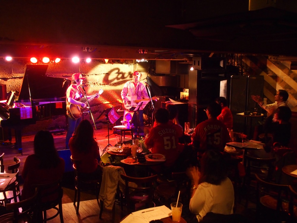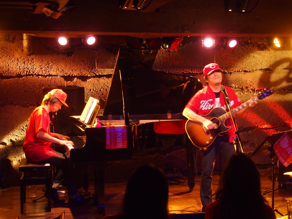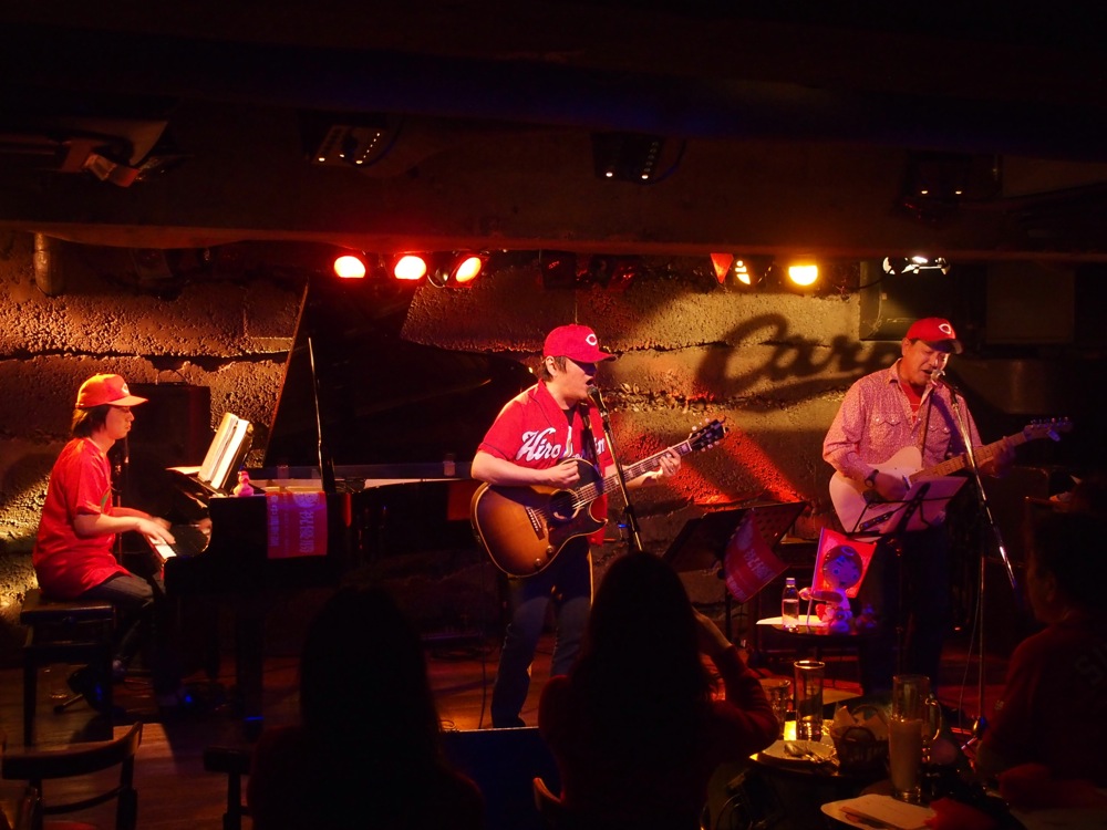 また、前回出演して頂いた有吉正己(以下、Sammy さん)にも、今回参加して頂きました。そんな時、自分は Sammy さんと丸本さんとのデュオのステージを見ようと客席に戻ってきたのですが、今回はドレスコードでもあったのかと思うくらい、客席にはカープのユニフォームを含む赤い服を着てきた方が多く、これには圧倒されたものでした(笑)。皆さんのカープ愛、流石でございました。