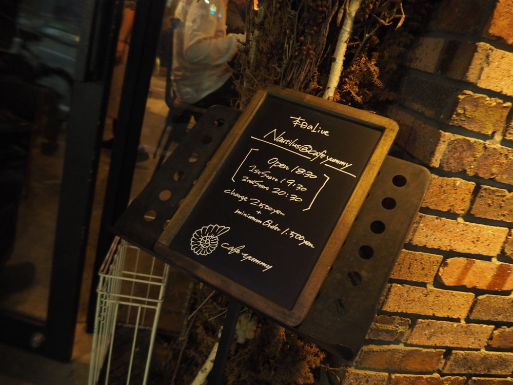 4月22日(月)は、Nautilus で高円寺 cafe yummy にてライブを行ってきました。ここで演奏する時はアコースティックライブと称し、ミニマムな楽器編成で臨む事を特徴とした日にしているのですが、そんなライブも今回で4回目…。入れる人数に限りがあるからこそ、お陰様で好評で、毎回告知してすぐにソールドアウトとなっていしまうライブでもあります。今回も勿論同様で、限られた空間で限られたお客さんと、楽しい時間を共有してきました。