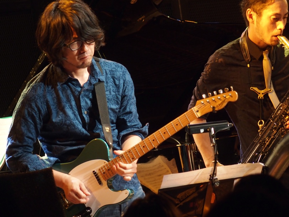 いつもは GG は8人編成としてライブを行っていますが、今回はリーダー上杉君の学生時代からの盟友である、ビブラフォンの宅間善之君を迎えて、全9人編成と豪華に行われました。迫力のあるサックス・カルテットに、ビブラフォンの柔らかい音色が包み込み、上品且つ温かみのあるサウンドになっていたような気がします。…これだけで既にスペシャル感が漂っていますが、サポート陣も更に豪華であり、正に今回だけの特別な時間が出来上がっていたように思います。聴き馴染みの高い曲から最近の曲まで、長い15年を経た選曲でお送りしていきました。