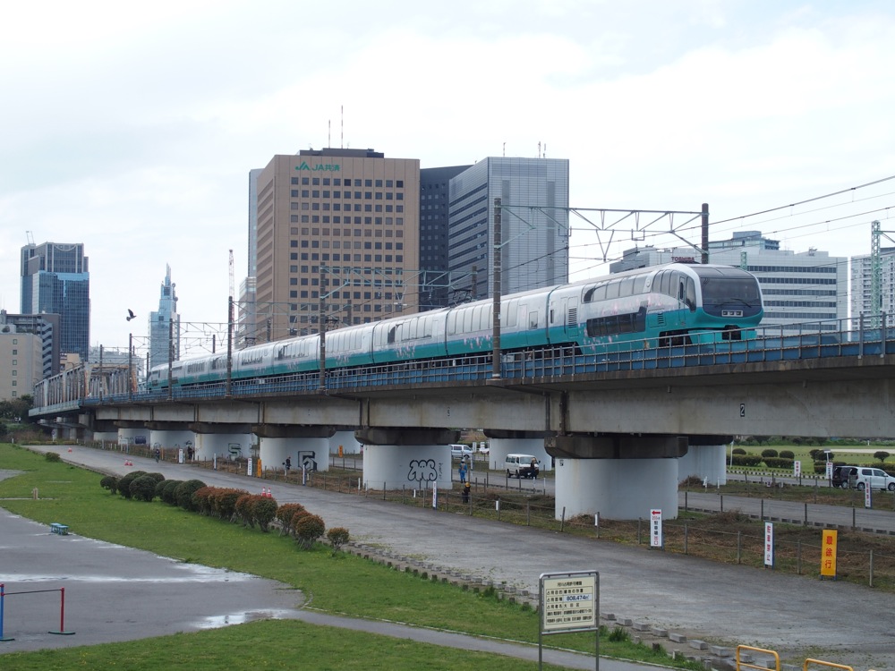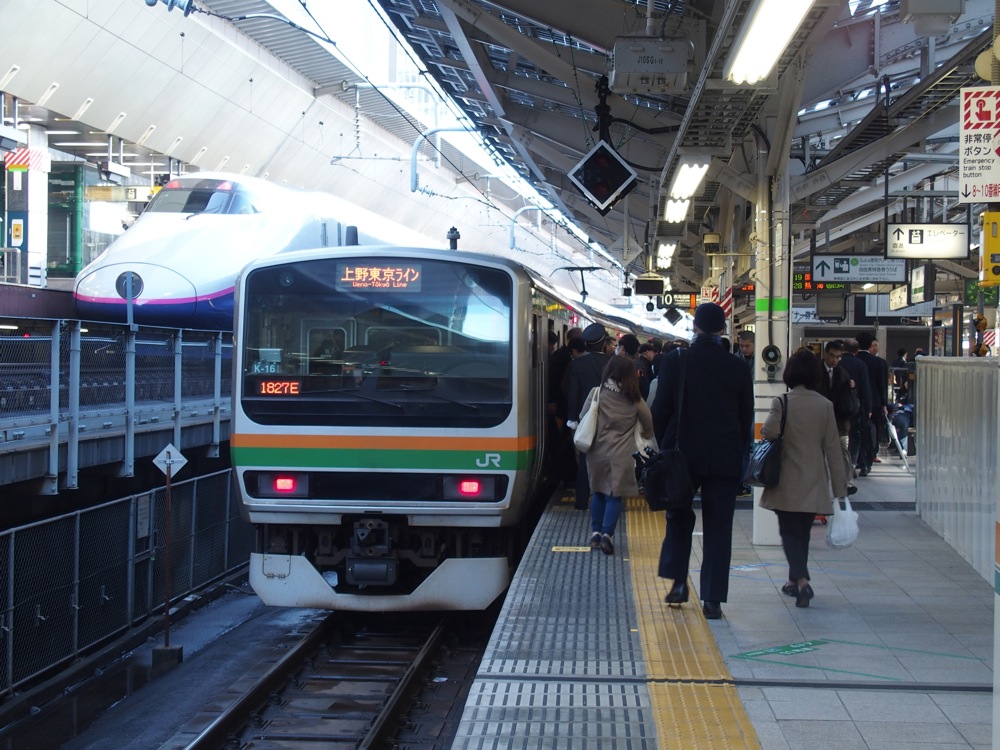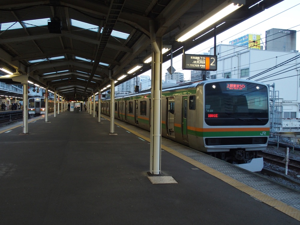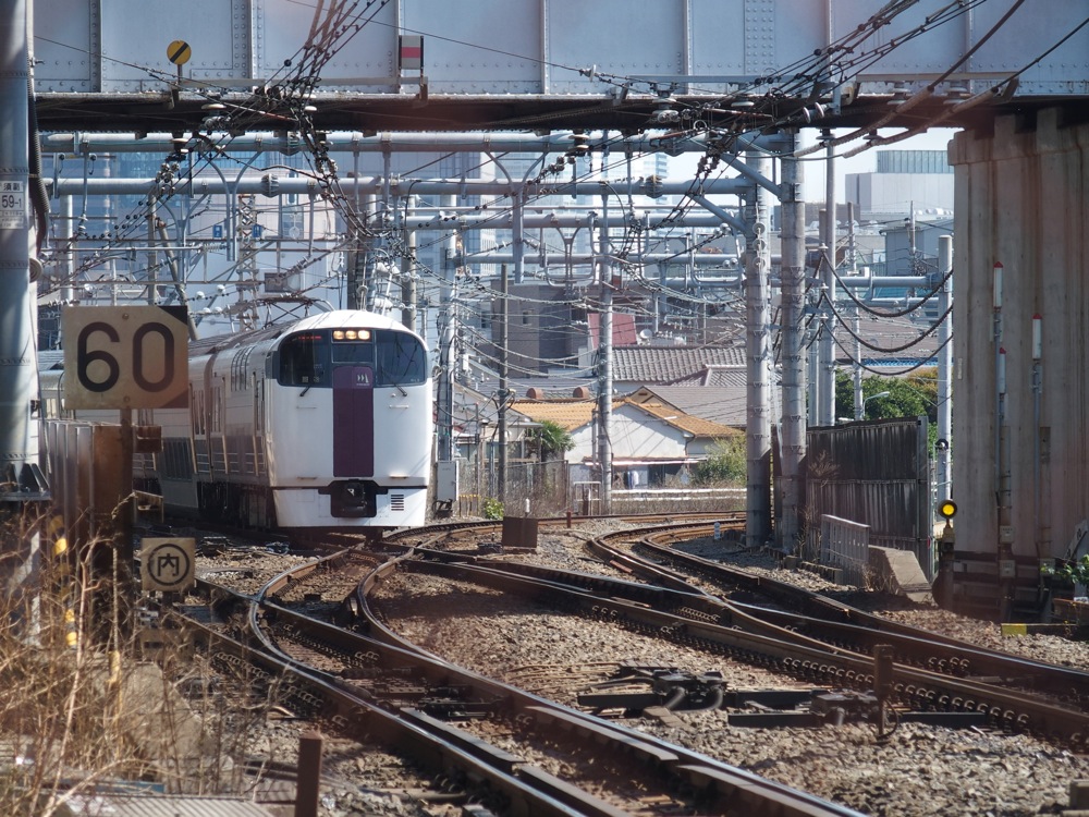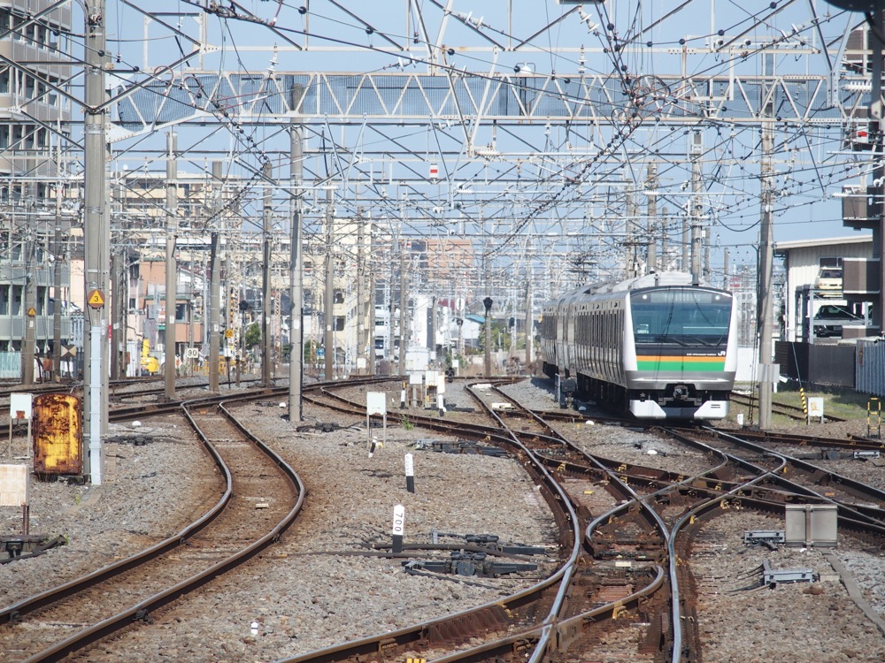 ここを通る列車は普通列車ばかりではなく、千葉県の銚子方面へと向かう特急『しおさい』号を始め、成田空港への足である特急『成田エクスプレス』は頻繁に発着しています。特急『成田エクスプレス』は、当駅で連結、切り離し(右上写真参照)を行い、ここから新宿方面と横浜方面へと乗客を振り分けています。