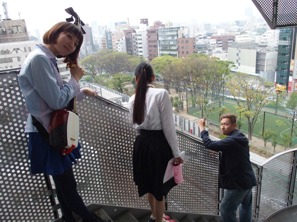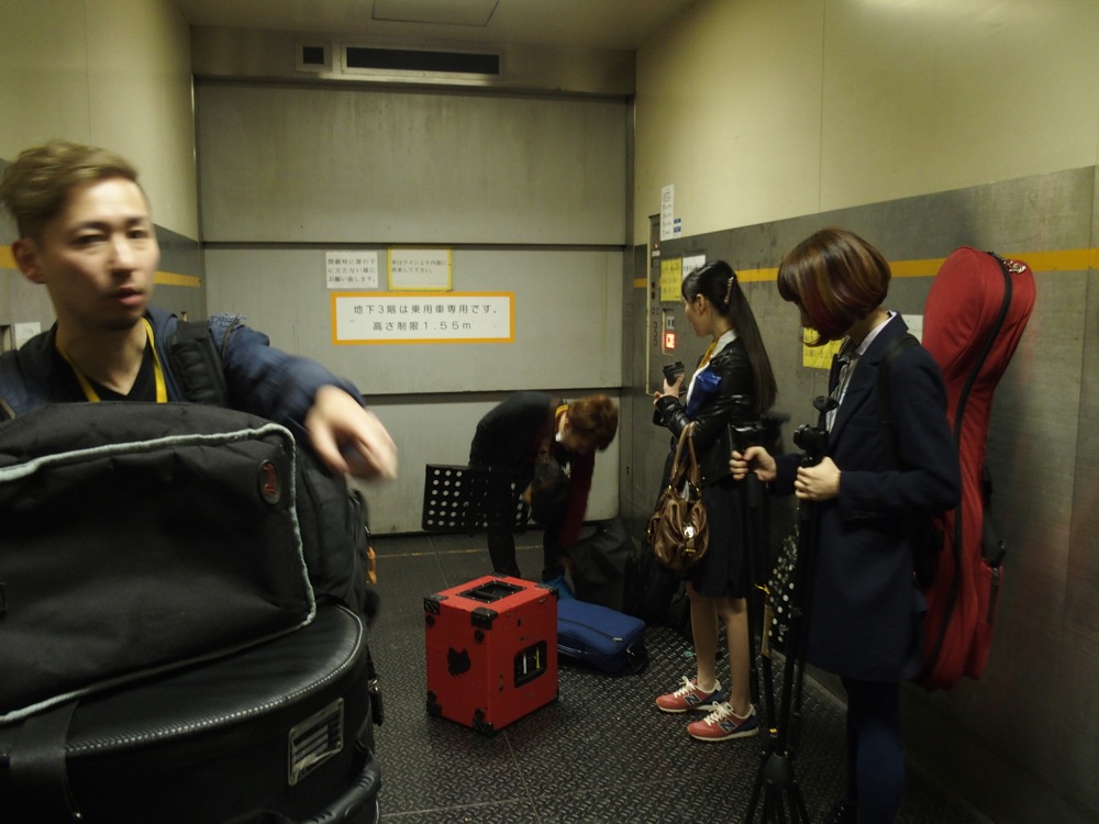 タワレコ渋谷店にはよく立ち寄らせて貰うものの、インストアライブというと個人的に初めてだったのですが、機材搬入の動線部分を体験する事に何だか新鮮味がありました(笑)。車ごと載せられるエレベーターで下がったり上がったり…、そして、スタッフ専用の裏の階段が外に面していて、意外に眺めが良かった事等々、始まる前から、良いテンション作りは出来ていたような感じはありました(笑)。