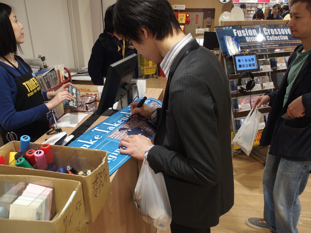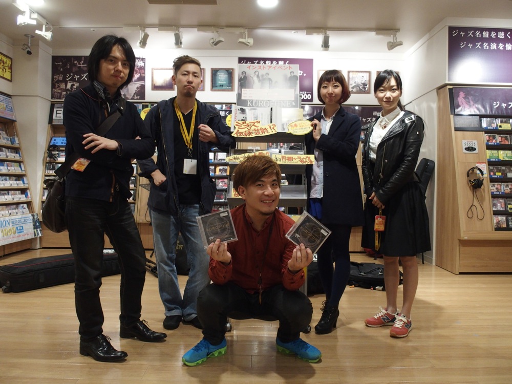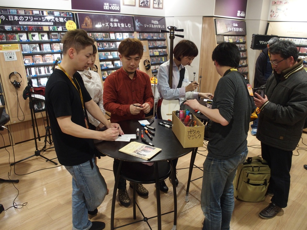 最後にはオリジナル曲の“A Night In Bali”を演奏して終了となりましたが、結局は45分くらいのステージになっていたのではないでしょうか…。予想より長くなってしまいましたが、自分達も満足、そしてお客さんも満足して頂いたようです。それは、その後のサイン会への長蛇の列が物語っていたと思います。お客さん達は皆笑顔で、今後のライブにも期待してくれている様子がよく分かりました。これはインストアライブならではの、ステージと客席の近さによるものかもしれません。お客さんの表情もよく分かり、その姿がまた演奏に力を与えてくれるのです。会場はとても温かく、集中して楽器に打ち込む事が出来ました。どうもありがとうございました。