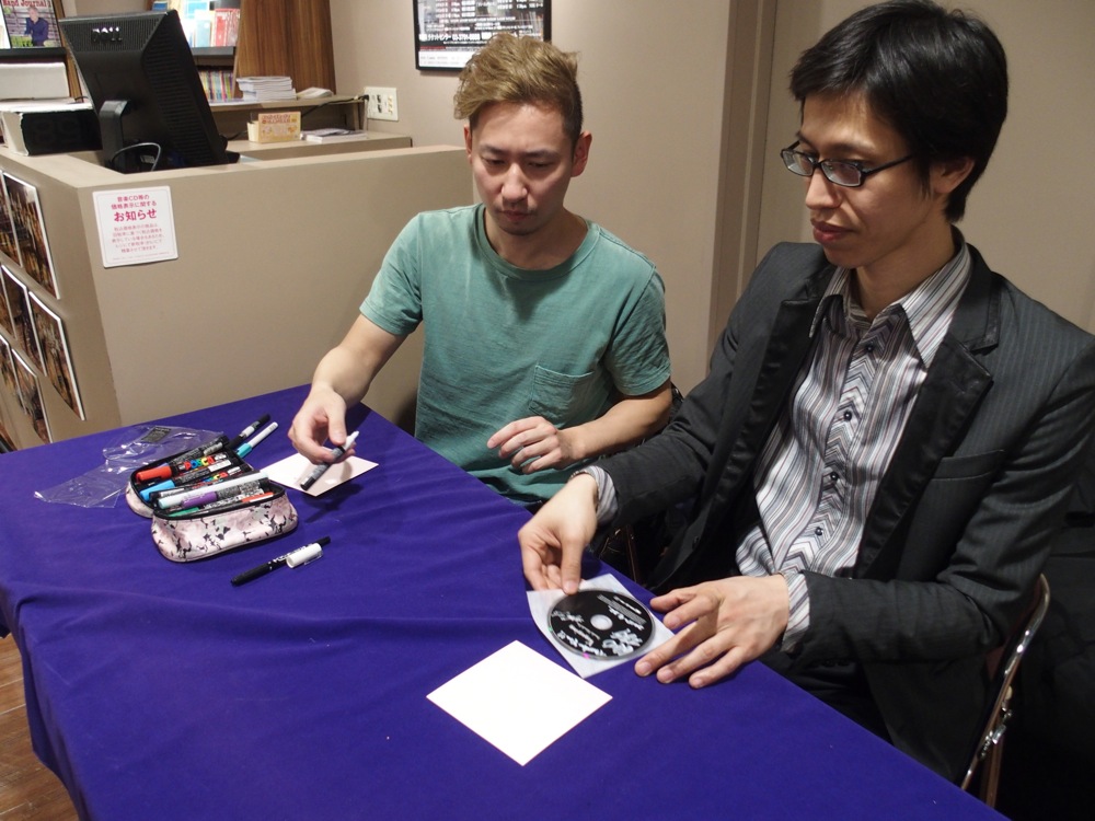 そして最後の5曲目には、リクエストも多い“Casa Familia”。今回は、グランドピアノを使用させて貰った感謝を込めて、テーマの前半部分はピアノ1本だけでやらせて頂きました。…こうして、あっという間に全5曲が終わってしまったのですが、いつの間にか客席の後ろの方まで立ち見が出ていた状態になっており、本当に多くの方に見て頂けたのだと思いました。サイン会にもとても多くの方にお越し頂き、1枚1枚、メンバー全員で丁寧にサインをさせて頂きました。実はこの日、タワレコ限定の特典音源が付けられたCDが在庫切れになっていて、直ぐさま発注をし、特典分のCDはサイン会中にあと何分かで到着する…というような状況になってしまっていたようなのですが、無事にサイン会中にそれは間に合い、ここでお買い求めて頂いた方には行き渡っていたようです。ご迷惑をおかけ致しました…。