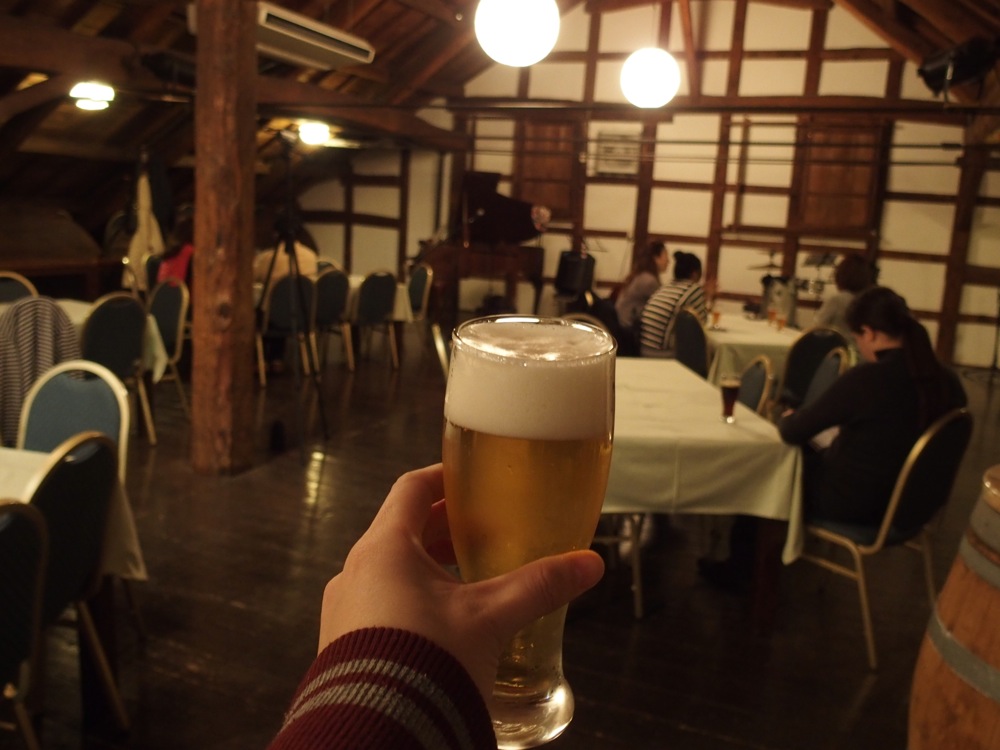 ちなみに、この建物の1階には前述のビール工房が入っていて、2階では作り立てのビールを味わう事が出来ました。このビールの美味しい事美味しい事…。更に日本酒も出され、この日はビッフェスタイルで客席を展開させていくなど、落ち着いた雰囲気の中で、少し華やかさも表現された演出も施していきました。