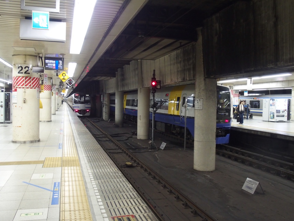 また、やはり今年3月の上野東京ラインの開業により、東京駅の“終着駅感”が薄れたような気がしてしまいました…。単純に、殆どの列車がこの東京駅を通り越し、北側の路線との直通運転を始めたからでもありますが、確かに行き交う列車を見てみると、ここは中間駅のような雰囲気です。列車の停車時間も長くはなく、時間短縮や速達間をアピールするかのように、次の駅に向けて淡々と発車していきます。東京駅というと、線路の高さが1段低くなっているJR山手線やJR京浜東北線のホームと、ここJR東海道本線のホームとでは、明らかに雰囲気が違っていたのですが、今やその雰囲気が近付いているように感じました。勿論、便利になった部分は大きいのですが、いわゆる日本を代表する東海道本線…という路線の風格を見出だすのは難しいかもしれません。ここが東海道本線の起点駅だと自信を持って言える材料も、もはや書類上の話しでしかないのでしょうか…。