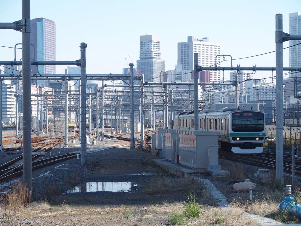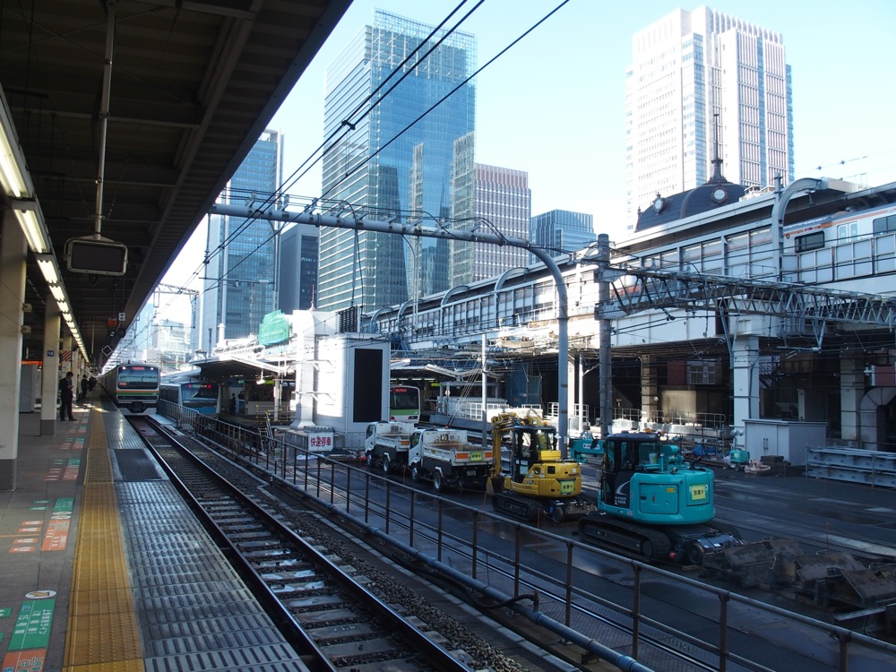 次の田町駅のホームの北側に立つと、東海道本線を始め、山手線や京浜東北線、そして東海道新幹線もが並行して臨めるポイントがあり(右上写真参照)、頻繁に行き交う列車を眺めているだけで東京の都会さを実感するのですが、この次の品川駅周辺はそれ以上に大きく都会化、そして今後も発展が見込まれている地域でもあります。田町駅と品川駅の間には、2020年を目処に新駅が開業する事も決まっています。