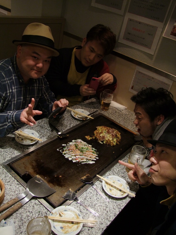 リハーサル後には、メンバーでお好み焼き屋の“美津の”へ。なかなか人気店らしいのですが、偶然にも列は無く、スムーズに入る事が出来ました。サックスの藤田君は大のお好み焼き好きなので、相当な満足感を得られていた事でしょう。ビールも頂きつつ、これはパフォーマンスにも良い影響が出そうです(笑)。