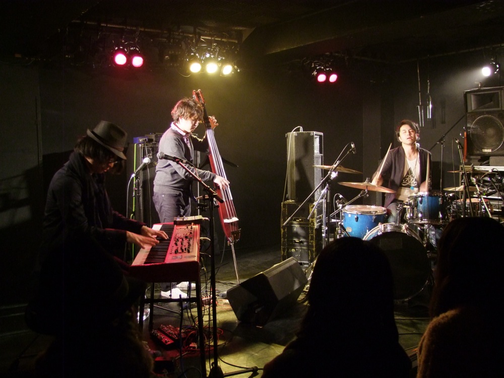 お客さんの盛り上がりも更に高みを見せていて、そこは fox で支配された空間になっていたと言っても過言では無いでしょう。自分達も後ろの方からステージを見ていましたが、これは確かに見入ってしまいます。個々の演奏というより、三位一体感が強い感じはするのですが、個々の演奏を抽出してみると、それはまた独特のフレーズを出していたりするので、なかなか不思議な感じなのです…。しかし、この不思議な感じが魅力の1つだとは思います。その不思議さを解明する為に、また自分達は見入ってしまうのかもしれません。