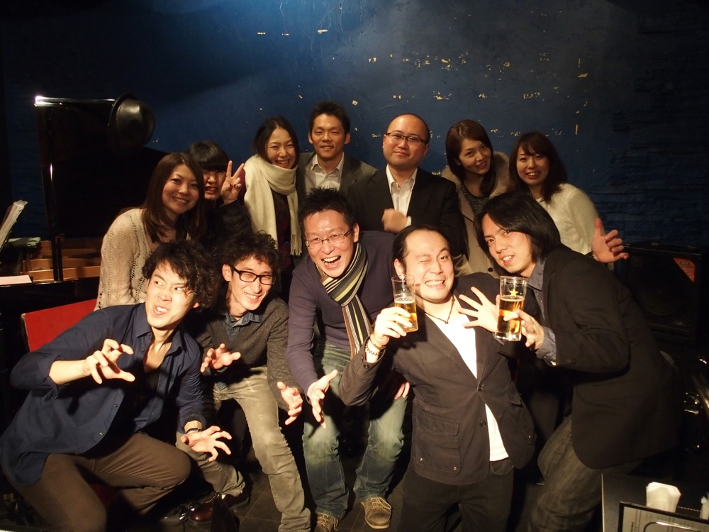 ついには、Mamiko さんがピアノを弾く曲まで登場しましたし(左上写真参照)、色々な可能性を全て出し切れたライブにもなっていたのかもしれません。良い時間をお客さんと過ごせたと思いました。どうもありがとうございました!…そして、マスターの満足そうな笑顔を浮かべた表情を見た時に、心から、足を運べて良かったと思いましたね。改めて、どうもありがとうございました!…打ち上げもまた、色々な意味で盛り上がった時間となりました。藤田君の土下座も見れましたし(携帯の写真ですが、せっかくなので載せておきます)、満足満足(笑)。