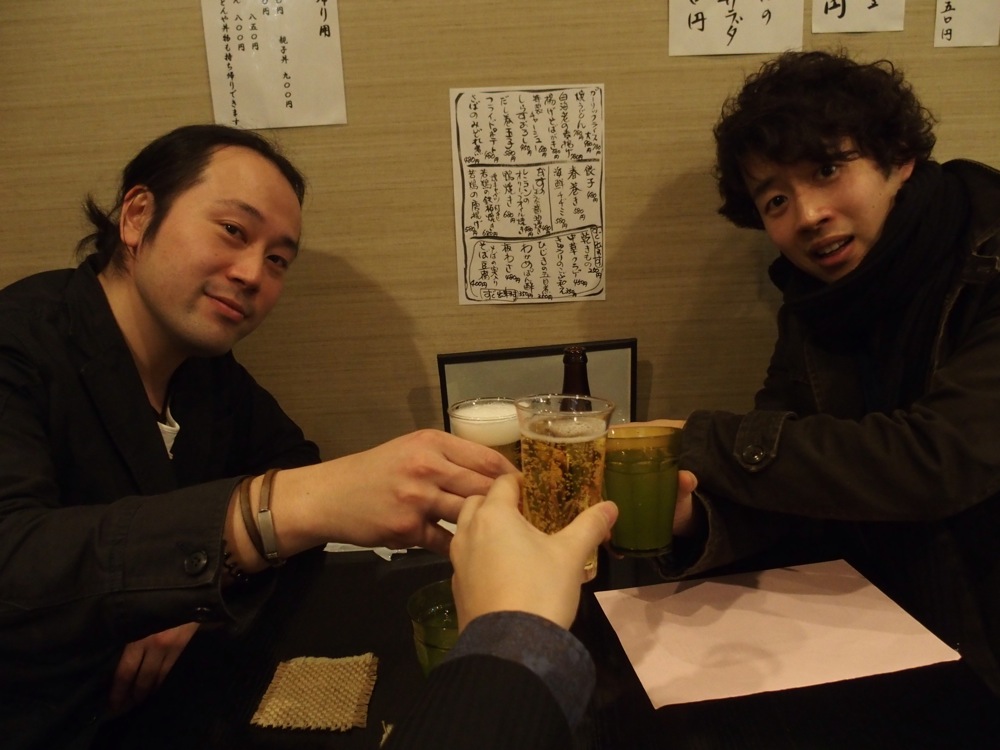 本当に、この3人が揃うのは香港ツアー以来でもあり、やはりこういう(右上写真参照)図式になってしまいます(笑)。個人的ながら、ここ1週間程、胃腸炎の為にお酒は自制していたのですが、この日の解禁を目指しての事でもあったのです…。どちらもビール好きのお2人という事で、飲まないわけにはいきません(笑)。そして、約1週間振りのビールの味は、とても美味しかったのでした♪