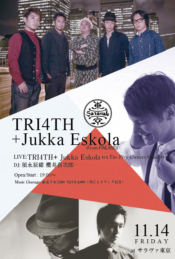 Open…18:30〜、Start…19:00~、TRI4TH の出番は最後、21:45〜(予定)、