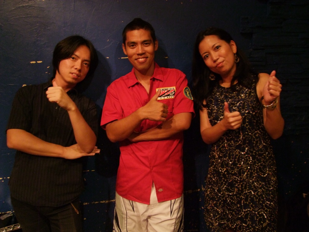今回のライブは新曲あり、既存の曲に新たなモチーフを加えた曲あり、カバー曲もあり…と、選曲の部分を見ても全体のバランスが良かったような気がします。曲にはそれぞれの特徴がありますが、その部分を生かしつつ、自分達らしいアレンジのサウンドをお届け出来た1日だったと思いました。この日、ベースの池田君も見に来てくれたので、せっかくなので4人で記念撮影。ほのぼのと締めさせて頂きました(笑)。