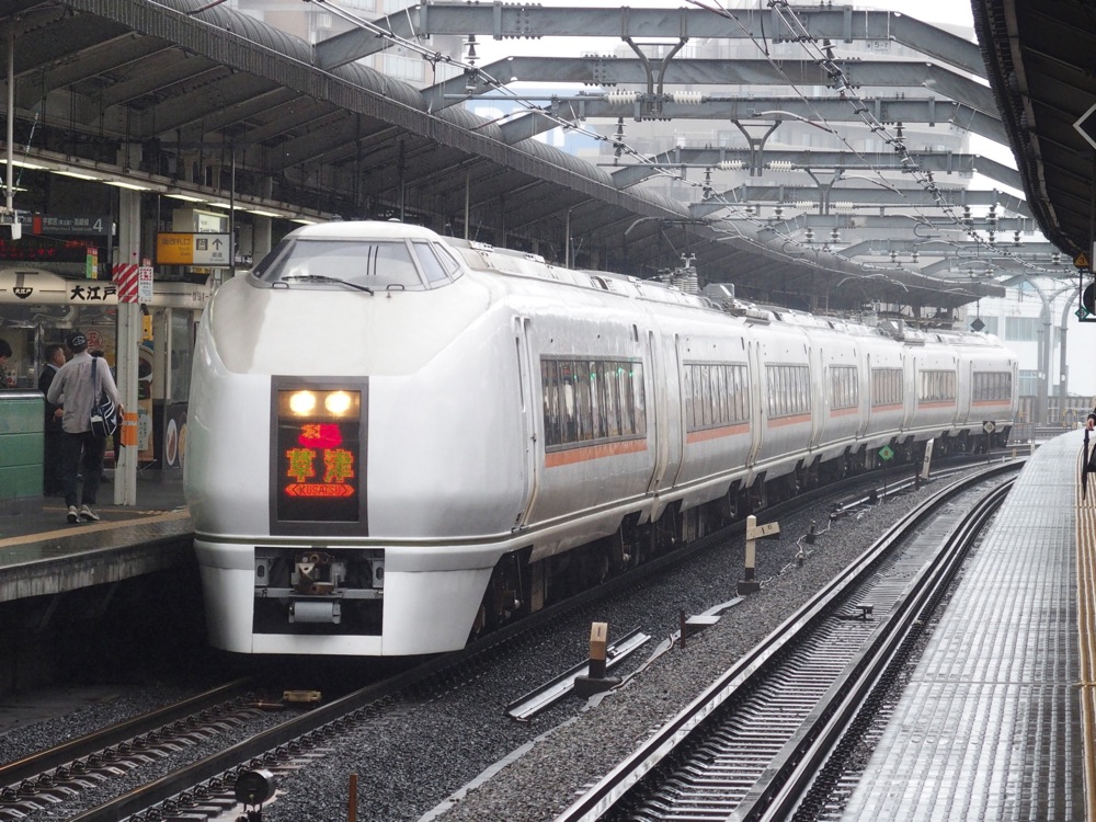 …色々あって、郷原君は先に新幹線のチケットを取ってしまっていたそうで、行きは自分単独で向かう事になったのですが、そもそも猿ヶ京の場所は皆さんはお分かりでしょうか。群馬県でも割りと新潟県寄りに位置し、新潟県の苗場に向かう国道17号線の途中にある温泉地ですが、鉄道だけで行く事は不可能で、一般的な公共交通機関としては、上越新幹線の上毛高原駅から、路線バスで30分〜40分…という感じです。上毛高原駅は新幹線としては小さな駅で、まだ個人的に一度も降りた事が無かったので、そこから行くのも有りだなとは思ったのですが、近くを在来線(JR上越線)が通っており、前述の路線バスはそこからの駅から出ている路線なので、少々時間は掛かるものの、在来線で行ってみる事にしました(笑)。そしてその時に自分の頭を掠めたのが、最近車両が変更された特急『草津』号でした。〔鉄道さんぽ 12.(JR東日本、吾妻線編)〕で紹介していますが、これまで『草津』号に使用されていたのは旧国鉄時代から走り始めていた185系という車両で、いつまで走っているものなのか…と思っていた矢先、今年3月のダイヤ改正で、いきなり651系という車両に置き換えたられたのです。突然でビックリしたものですが、置き換えられたのは『草津』号だけではなく、JR高崎線系統の『あかぎ』等の特急もそうでした(こちらは1往復だけ185系が残存しています…)。651系は、元々はJR常磐線の看板特急『スーパーひたち』号として登場した車両で、近年はそちらはE657系という車両が台頭してきて、651系は事実上常磐線からは引退をしていました(期間限定で、現在1往復だけ残存されています)。