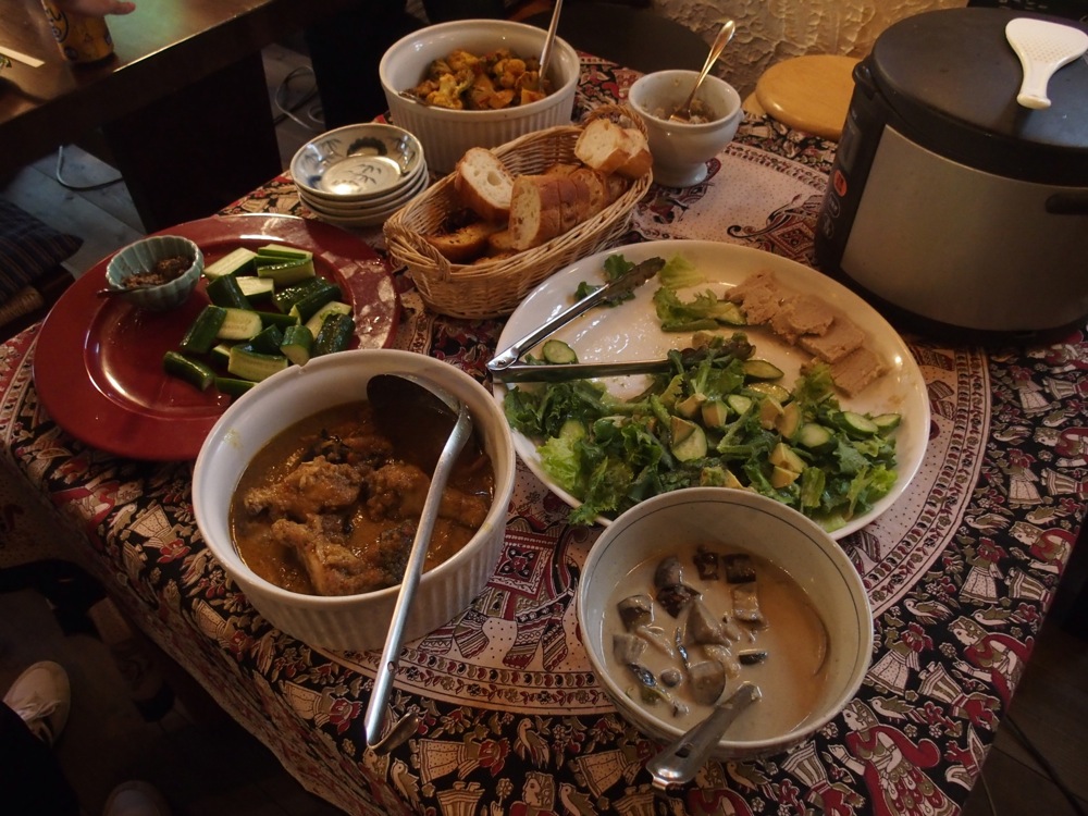1ステージ目は、わりと自分達にオリジナル曲を多めにし、自己紹介の部分も含めたステージになっていたかもしれません。言ってしまえば、殆どが自分達は初めてのお客さんです(逆に、知っていたお客さんが何人かいらしていたのは凄かったです!)。まずは自分達らしさを伝えるのが重要だとは思いました。1ステージ目後には食事が振る舞われ(右上写真参照)、Kie 時代の懐かしい料理を堪能させて頂きました♪