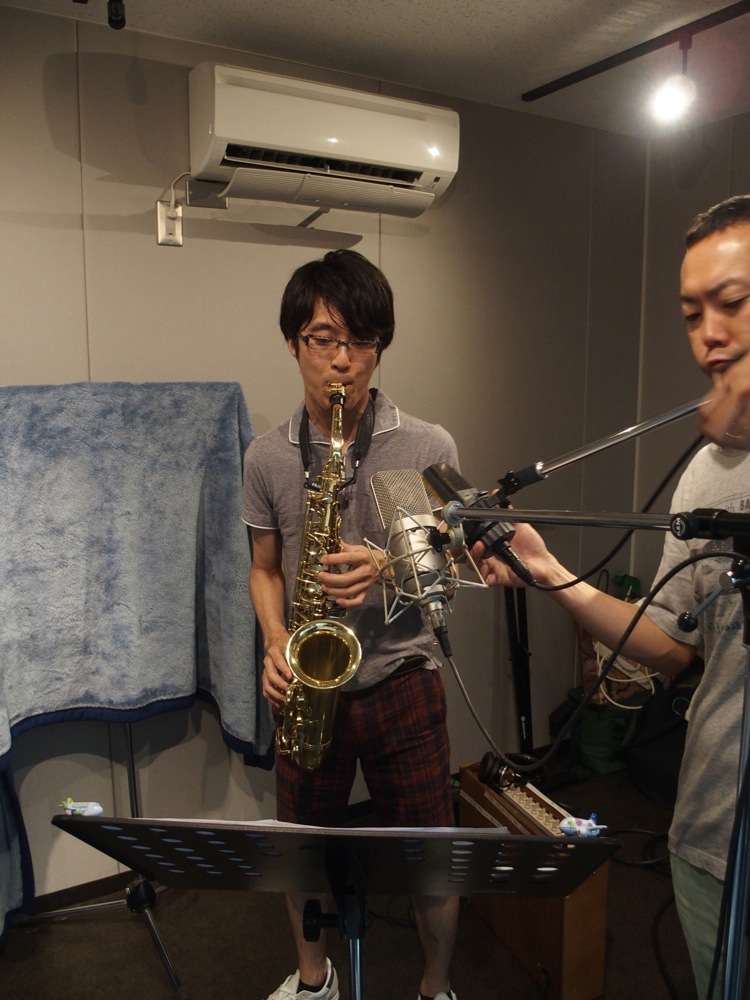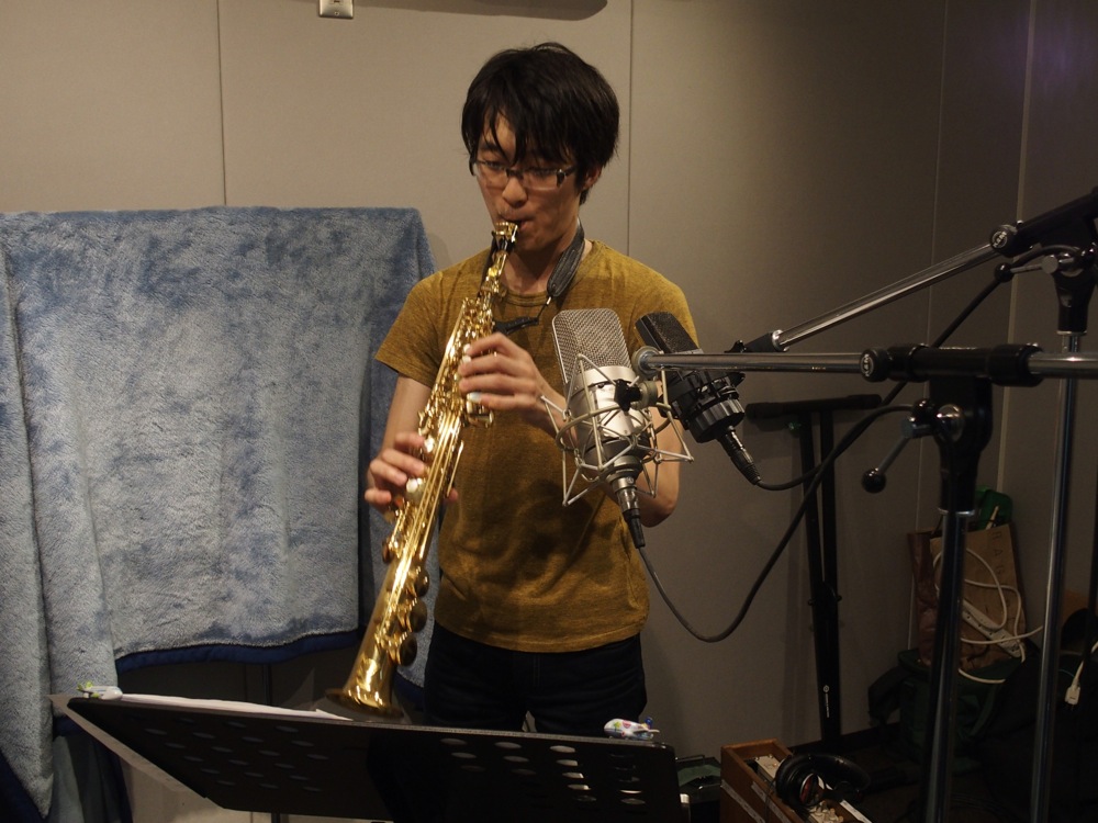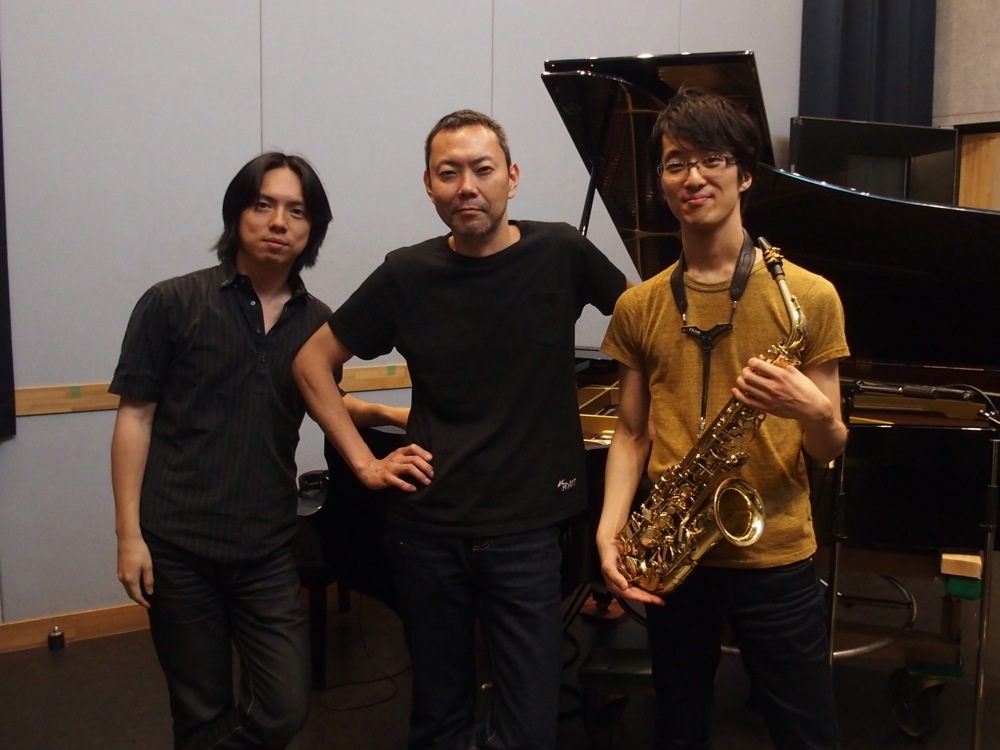 …レコーディングはとても順調でした。今回の作品は全部で10曲にする予定で、実際に録音したのは少し余裕を持って11曲にしたのですが、初日に7曲を録る事が出来まして、2日目には残りの4曲は勿論、改めて初日に録った曲を聴き直し、また再挑戦する時間も設ける事が出来ました。郷原君はアルトサックスとソプラノサックスを使い分け、後者は2日目に集中させた感じがありましたが、どちらも自分達が今まで行ってきたライブ感を満載に仕上げる事が出来たと思います。