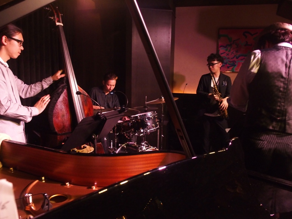 ステージは全部で2回…。それぞれたっぷり、1時間10分ずつぐらいは演奏していたと思います。今回の選曲はジャズが中心となるものでしたが、どの曲もソロを思い思いにとって進めていったので、内容的にかなり盛り沢山なものになりました。通常ですと、何だかんだでステージ時間を気にしたりして、ソロの長さもそれを意識したものになったりしがちなのですが、今回はそういった事は皆無だったと言っても良いでしょう…。また、メンバー皆さんのソロも文句無く格好良く、その雰囲気がそのままステージに反映されていたので、特に長さも感じさせなかったのでした。