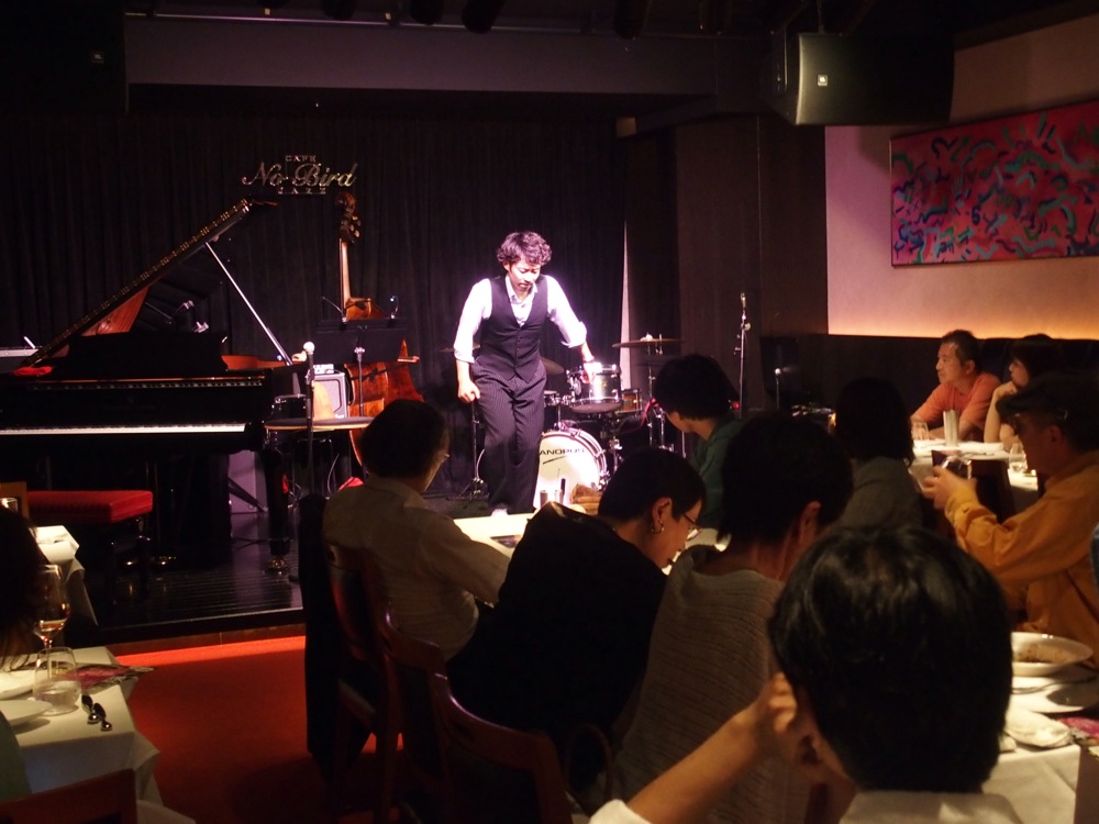 曲によって、サックスが入らない曲や、タップだけの曲、また、ピアノとタップのデュオでやる曲など、演奏編成に関しては結構バラエティに富んだ感じにしていたので、お客さんも色々な視点からタップを楽しめたのではないかと思います(逆に、タップが入らない曲も1曲だけありましたが…笑)。また、今回はお店的にもタップをフィーチャーした宣伝にしていたので、その意味でも良いステージングになっていたように思いました。