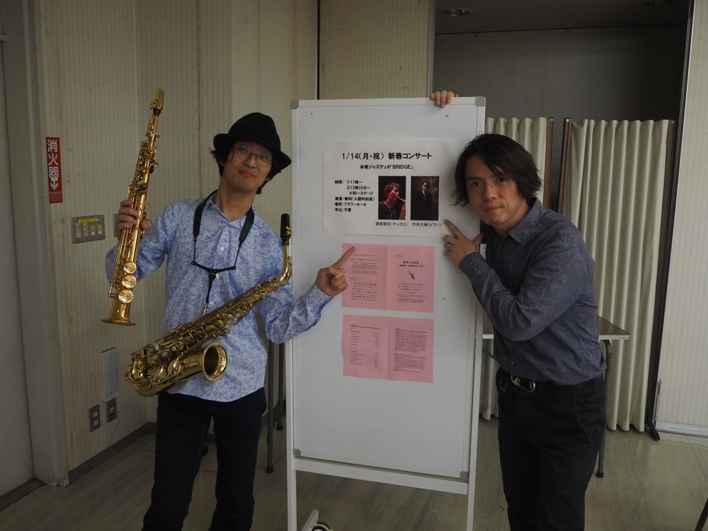 さて、そんなフラワーセンター内の状況だったので、この日はそんなにお客さんとは来ないのではないかと思っていたのですが、いざ蓋を開けてみると、ホール内は沢山のお客さんで一杯ではありませんか。これが午後の部になると、立ち見ができ始めるというような状況になる程で、これには自分達も驚きました。午前の部と午後の部では、セットリストは同じで構わないとは言われていたのですが、ジャズですし、レパートリーも気軽に返られる自分達なので(笑)、選曲には変化を付けてみました。午前も午後も、どちらも足を運んで頂けたかも多かったので、これには喜ばれた事と思います。