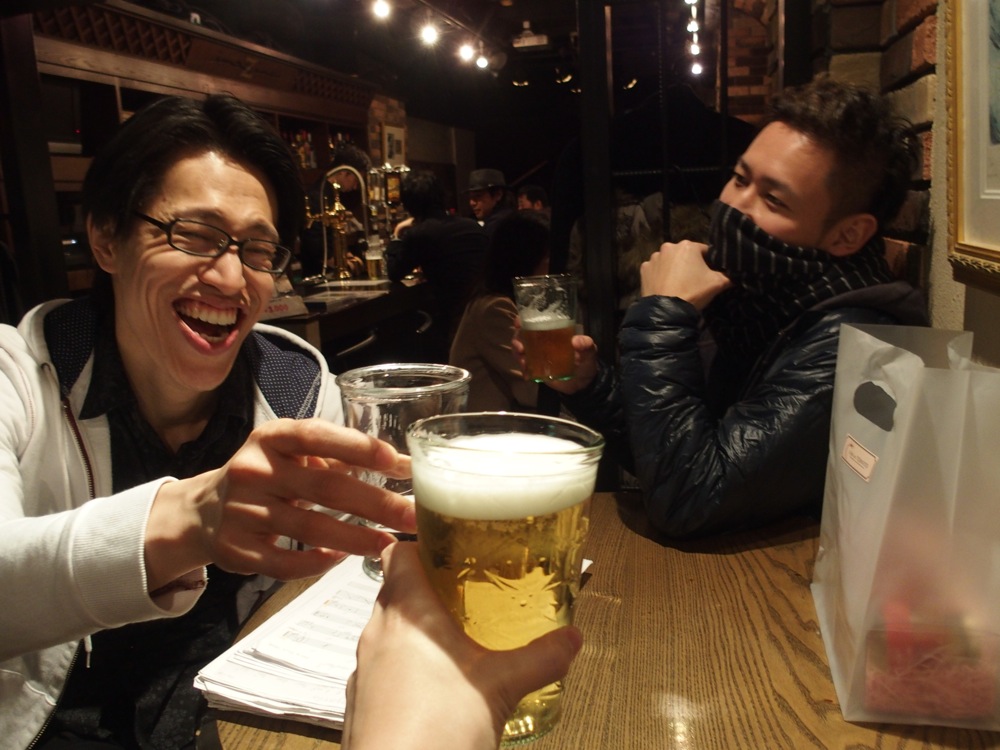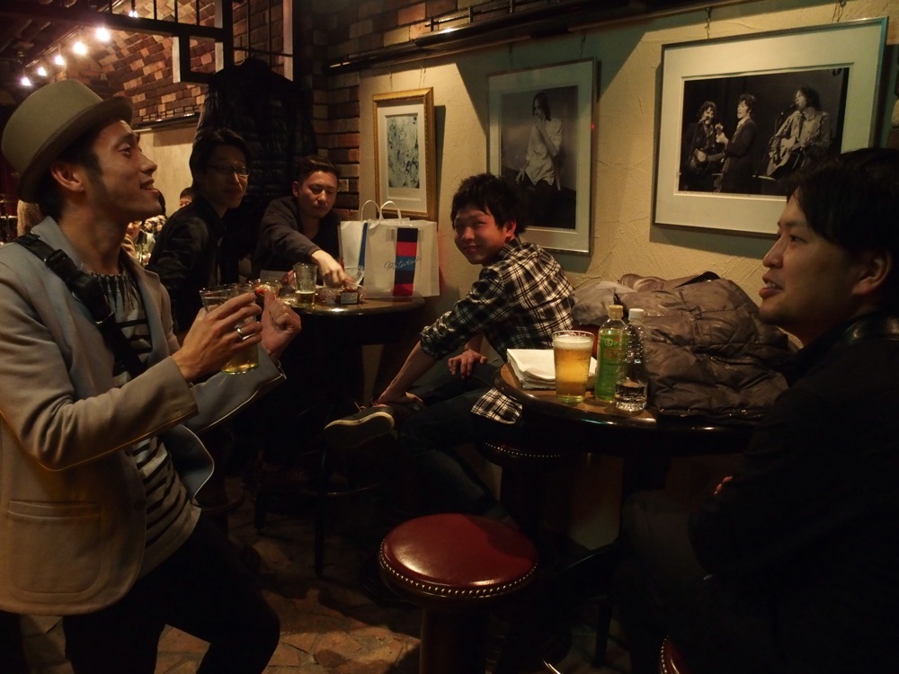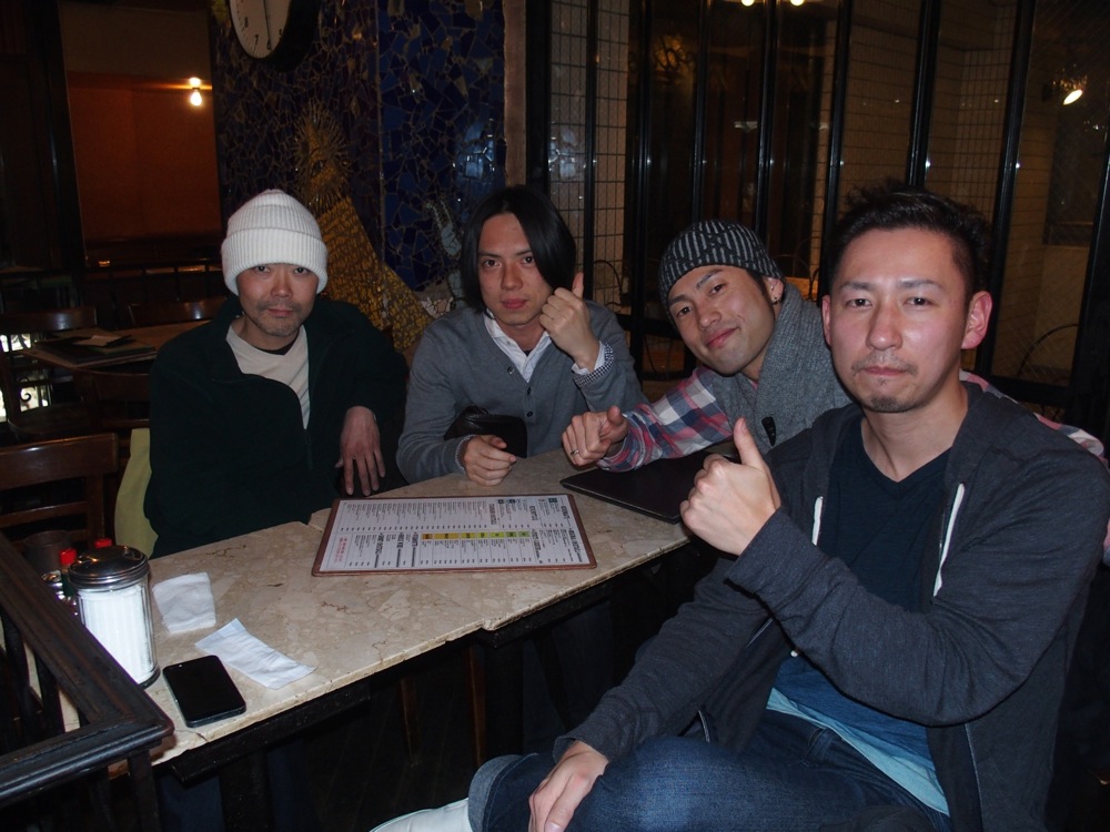 レコーディング日程の1日目(左上写真参照)にも、2日目(ちなみに、右上写真はこの日の2軒目…今回のプロジェクトには特に絡んでいない、エンジニアの速水さんが何故か参加…笑)にも、どちらにも進んで打ち上げを行ってしまっている事に(須永君は残念ながら不参加…)、何か新しい事をやってやろうという意気込みが感じられる事でしょう。どうもお疲れ様でした。これから、本当に楽しみにしていて良いと思います!
