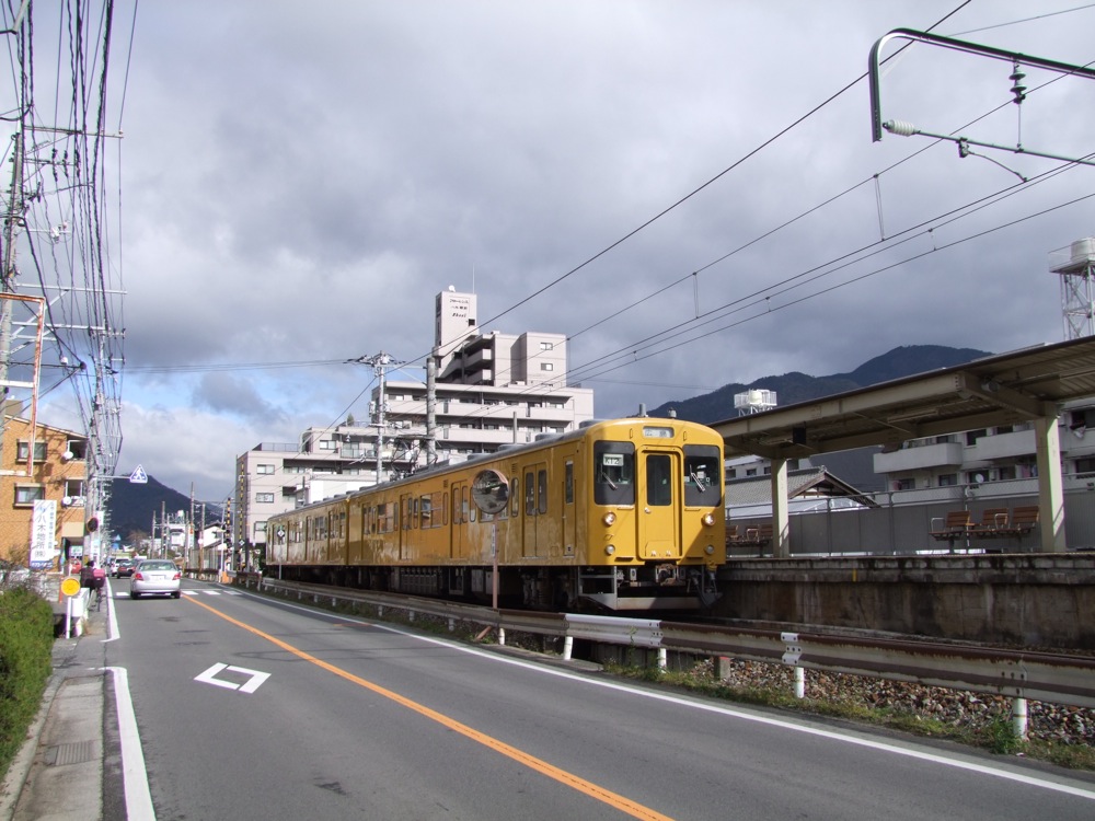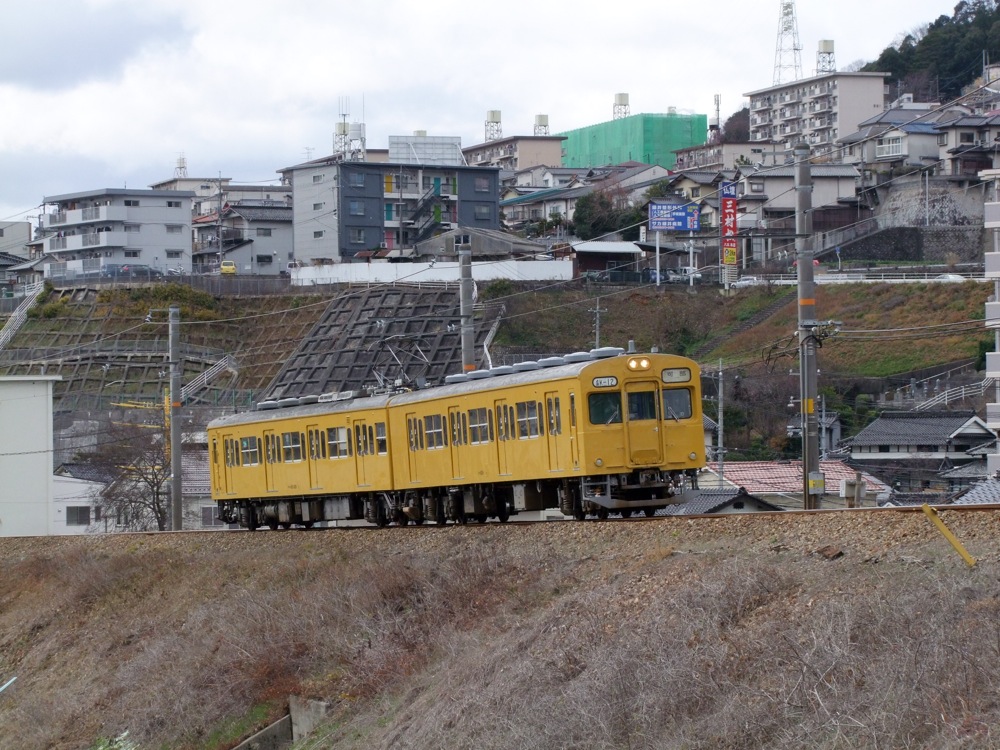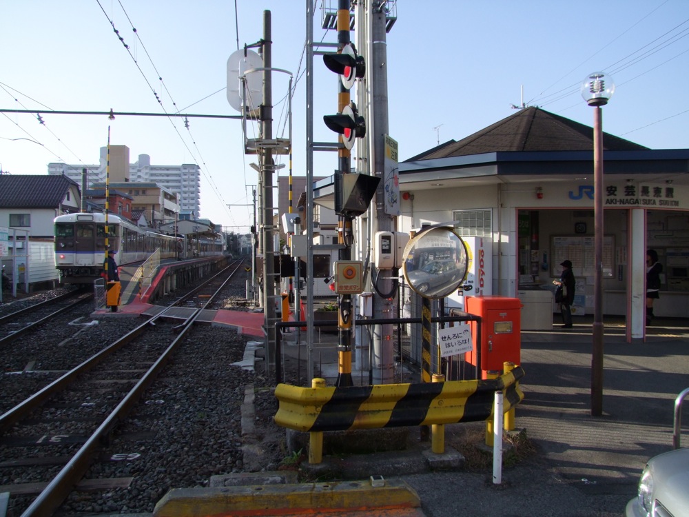 可部線は、元々横川駅を起点とする私鉄だった為、駅間が短かったり、線路ギリギリまで住宅が接近するような、いわゆる私鉄らしい沿線風景が広がっています。これは1936年に国有化されても基本的には変わらず、私鉄らしい風景にJR(旧国鉄)の車両が走るというのは、趣味的にも見ても面白い路線ではあります。