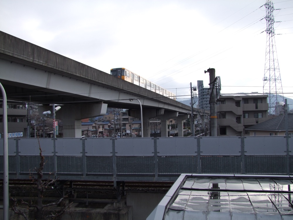 大町駅に着きます。この駅は、接続する広島高速交通アストラムライン(右上写真参照)が開業した1994年にJR側にも新設された駅で、可部線では3番目に乗降客数の多い駅でもあります。上写真を見ても分かるように、周囲は完全に宅地化されていて、大町バスターミナルとも直結しています。ここまで、横川駅から5つ目の駅ですが、まだ6、5kmしか来ていない事を考えると、やはり可部線の駅間は基本的に短いようです。ちなみに、次の緑井駅までは、当駅から僅か0、8kmの距離となっています。