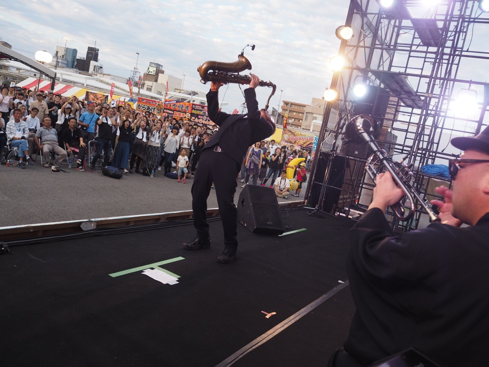 そして中州ジャズの本番となった、次の日の9月14日。当日は雨に悩まされた天候になってしまいましたが、なんとか TRI4TH ステージの時は小雨、そして止んでもくれていて、今回ついにメインステージともなる GREEN ステージでの演奏が実現したのでした。かなり前から多くの方に集まって頂いて、ステージから見えた景色は本当に素晴らしかったです。トリでもないのにアンコールまで頂き、嬉しかったです。どうもありがとうございました!