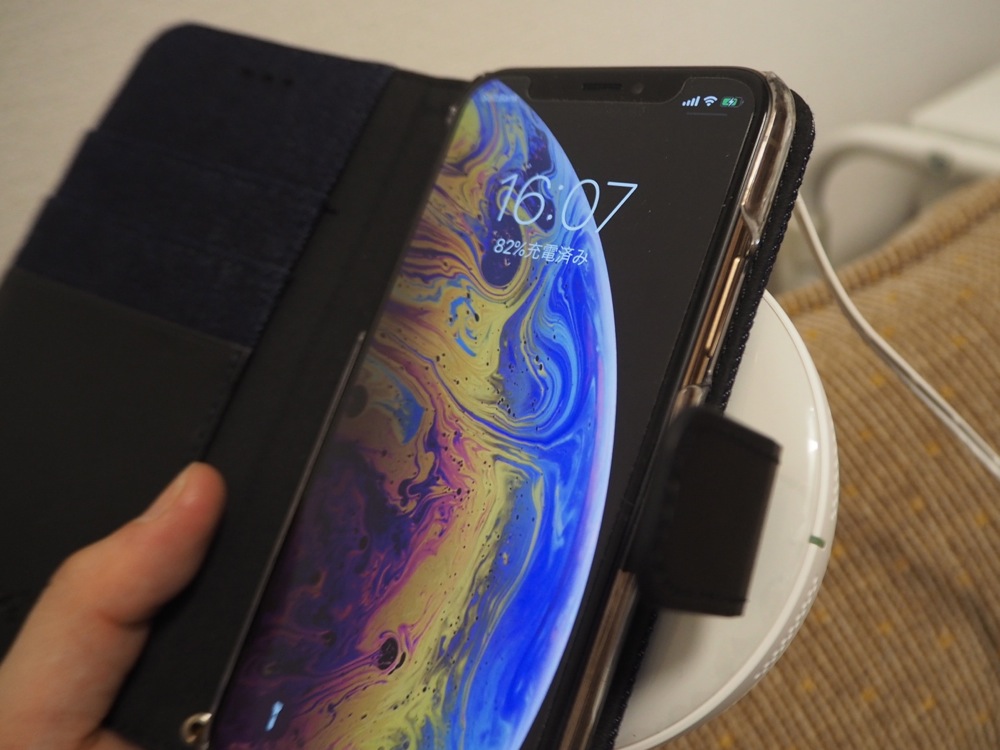 そして、初経験であるワイヤレス充電。なんでこれで充電が出来るのか、未だによく分からないのですが(笑)、技術が進んでいる事を実感出来る機種でもあるという事でしょう。ケース付きでも大丈夫なのか心配でしたが、無事に充電出来ました!