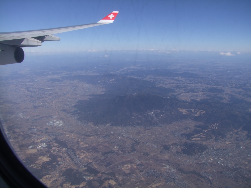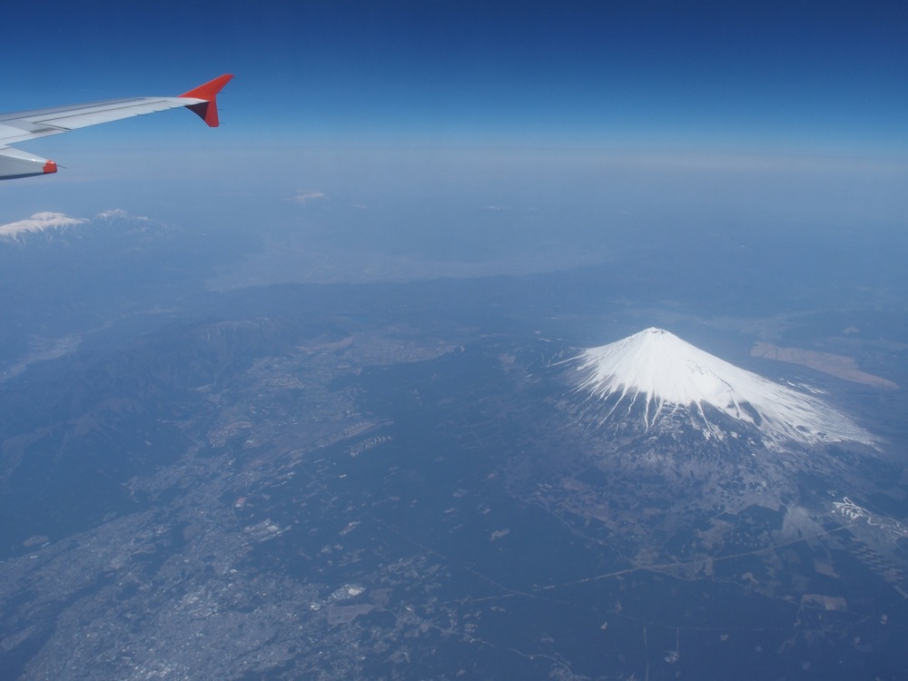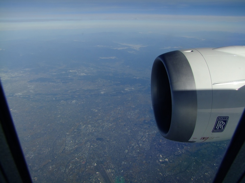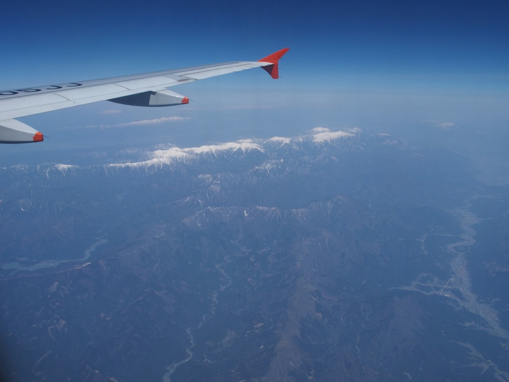 成田空港からの離陸ですので、巡航高度に達した後に東京湾を横断するようなルートになるのですが、この日の天気は非常に良く、羽田空港を手前にし、東京23区エリアがよく見渡せる光景が広がっていました。この分でいくと、富士山もアルプスの山々もクリアに見えそうですが、実際に期待は裏切りませんでした。やはり、飛行機からの景色は何度見ても飽きません。関西空港までの1時間半は、退屈いらずでした。