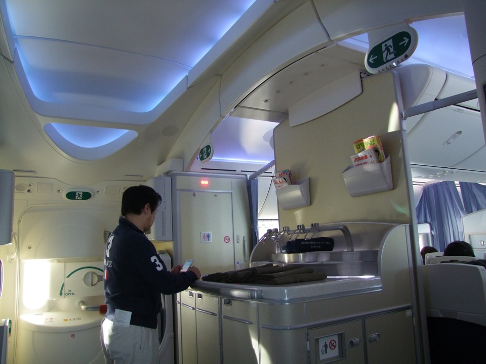 A380は以前、韓国のソウルに行った時にも乗りましたが〔旅日記 39.韓国、ソウル編(2011.7.29〜8.1)参照〕、日本の航空会社では導入されていなく、まだまだ日本人的には珍しい飛行機でもあります。ソウルへは日本から2時間強の距離なので、この時にはすぐに乗り終わってしまうのですが(笑)、パリへはA380の本領が発揮できる約12時間の距離です…。その乗り心地を味わうには充分なフライトではありませんか。そんなパリ行きのA380の便は成田空港12:55発…。時間的にも余裕を持った搭乗と、そのゆったりとした機内に、早速旅心がくすぐられてしまいました。