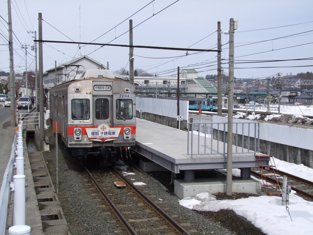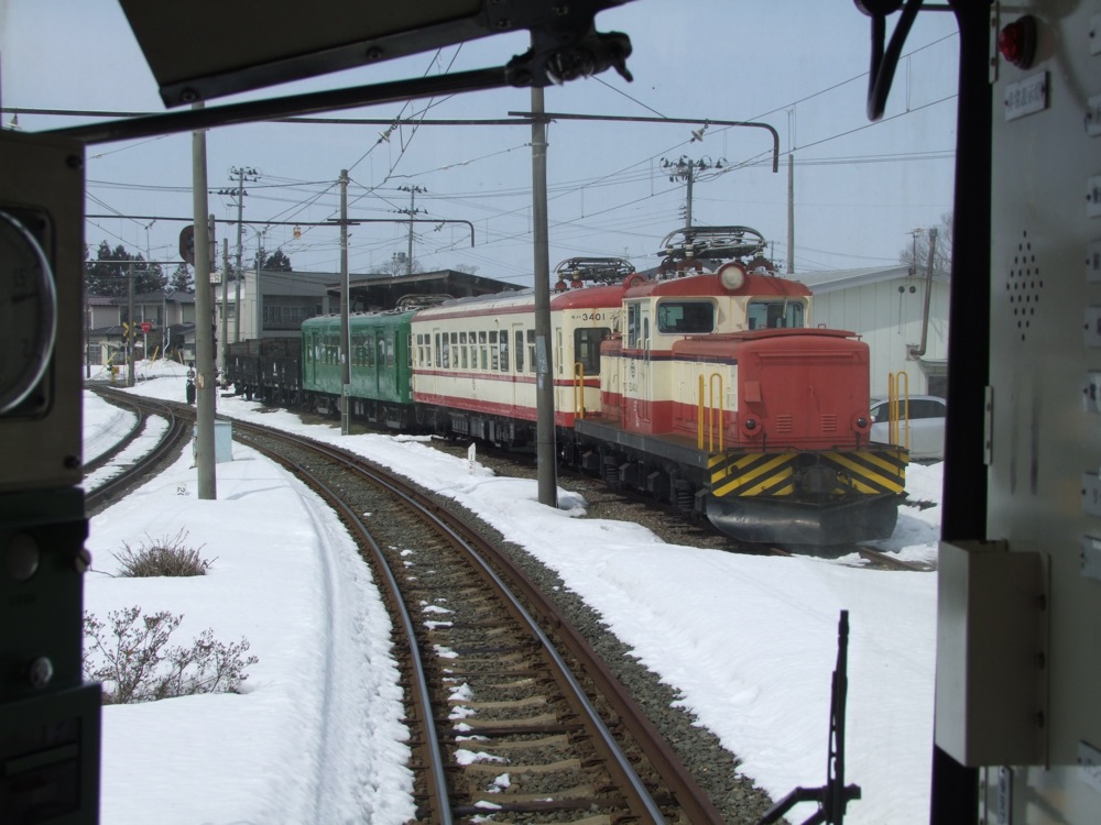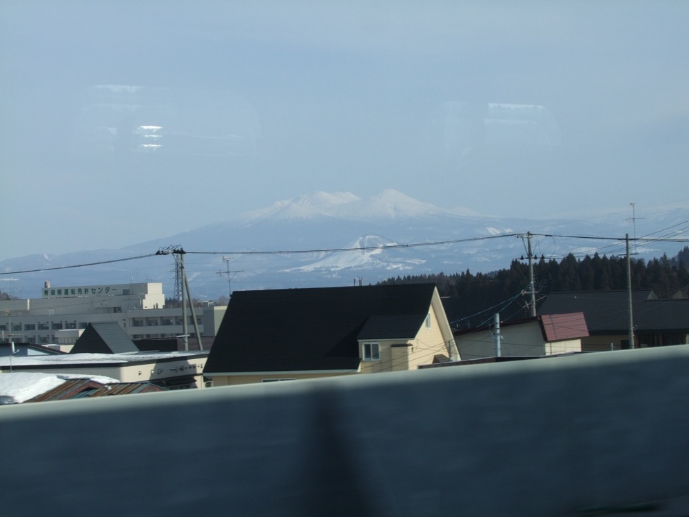 この区間は何度も通った事があるのですが、“ヒルネ”利用とは言え、寝台車から見る車窓はまた異なった味わいがありました。明らかに車内の雰囲気が日常とは異なり、時間の進み具合さえ遅く感じるのです。そして、これは客車という環境が大きいのですが、とても静かなのです。確かに、客車自体に動力は無く、先頭の電気機関車1両のみがそれを担うので、モーターの音というのが全くしないのです。特に、奥羽本線は区間によっては単線で、列車同士の行き違い待ちをする為に、客扱いをしなくても駅に停車する場合がよくあるのですが、その時の静けさがまた格別です。特に大きな駅でもない(むしろ山間の無人駅とかです)ので、そもそも物音がする方がおかしいのです。そして、列車行き違い後に動き出す瞬間、先頭の電気機関車の動力がそれぞれの車両に伝わるのは時間差があるので、ガクンガクンと、連結器の音を立てながら発車していく…。車両のそれぞれに動力がある電車では味わえない発進で、これがまた旅情を引き立てるのです。東能代駅、大館駅等を経て青森県に入り、大鰐温泉駅、弘前駅と停車していき、車窓に岩木山(左上写真参照)が見えて来ると、そろそろ“あけぼの”号の旅の終わりが近付いてきますが、停車する度に、あと何回この発進が経験出来るのか…と思いながら時間は過ぎていくのでした。