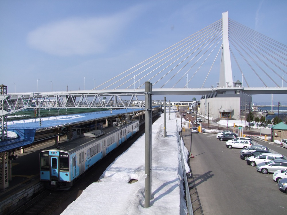 列車は1両編成。JR北海道のローカル線ではよく見るスタイルですが、ここ江差線も例外ではありません。乗車率は、自分も含めて10人くらいだったでしょうか。この区間は1日に列車が6往復しか運転されず、これでは風前の灯と言われても仕方無い状況ではあります。実際、JR北海道の路線で、一番利用者が少ない区間でもあるのだとか…。建設中の新幹線の高架橋が恨めしくも見えますが、もう廃止は決定になってしまいました。自分が出来る事は、この区間の乗車をなるべく記憶に留めておくのみです。