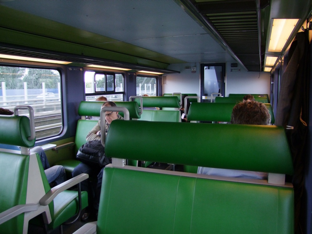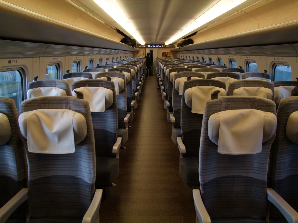 車内は寝台車そのもので、ただ布団が敷かれていないくらいでした。この“ヒルネ”というのは、この時は既に『あけぼの』号でしか行われていませんでしたが、寝台特急が全盛期の頃は至る所で行われていて、昼行特急の代わりを大々的に担っていたのです。布団が取り払われた寝台は、さながら幅のあるボックス席のようです。定員的には、1つのベッドに3人が腰掛けられる設定になっているようですが、流石に真ん中の人は大変かもしれませんね。まあ、この乗車率で言うと、1つのベッドに1人か2人が腰掛ける状態で収まるので、あまり心配しなくても良いのかもしれませんが…。