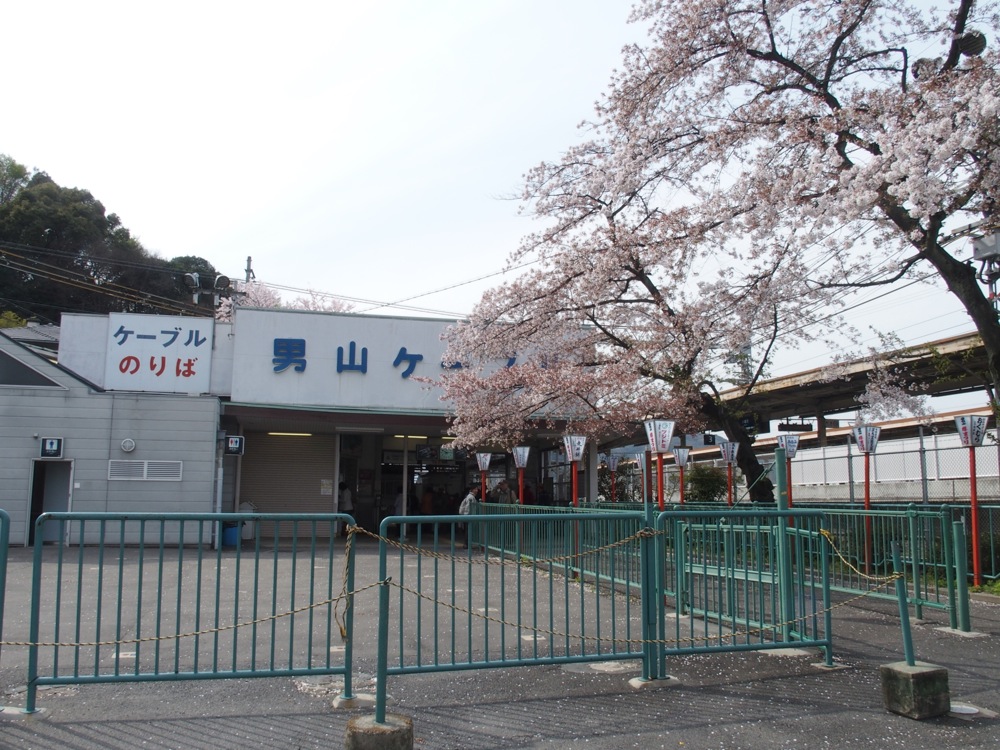 所要時間は3分程度なので、わりと小規模のケーブルカーに入ると思いますが、それでも歩いて登る事に比べたら有り難い存在です。石清水八幡宮の大事な足でもあり、初詣客で賑わう1月中に、1年の利用者の半分が占めてしまうのだとか…。そう考えると、この時というのは桜の時期とも相まって、わりと乗客は多い方だったように思いました。