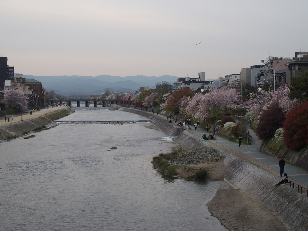 京阪電鉄で四条河原町駅を降りると、そこには鴨川沿いに並ぶ桜の姿が…。これはなかなか期待出来そうです。ひとまずこの日の夜は京都の食を堪能しつつ、桜の堪能は次の日に取っておく事にしました。